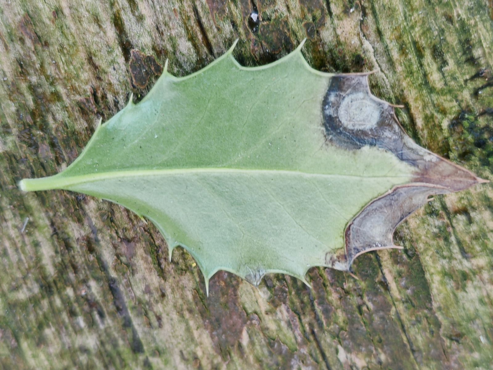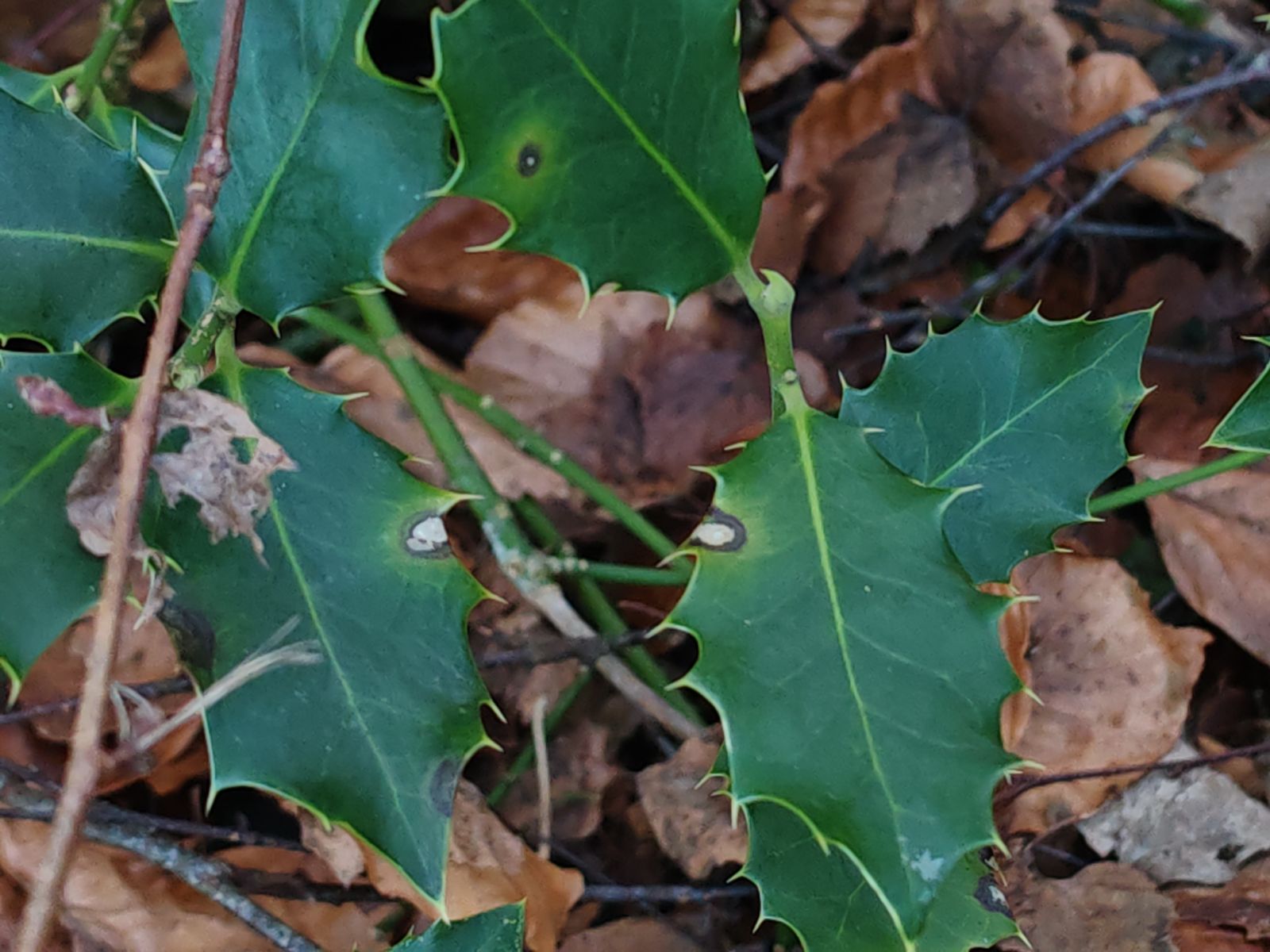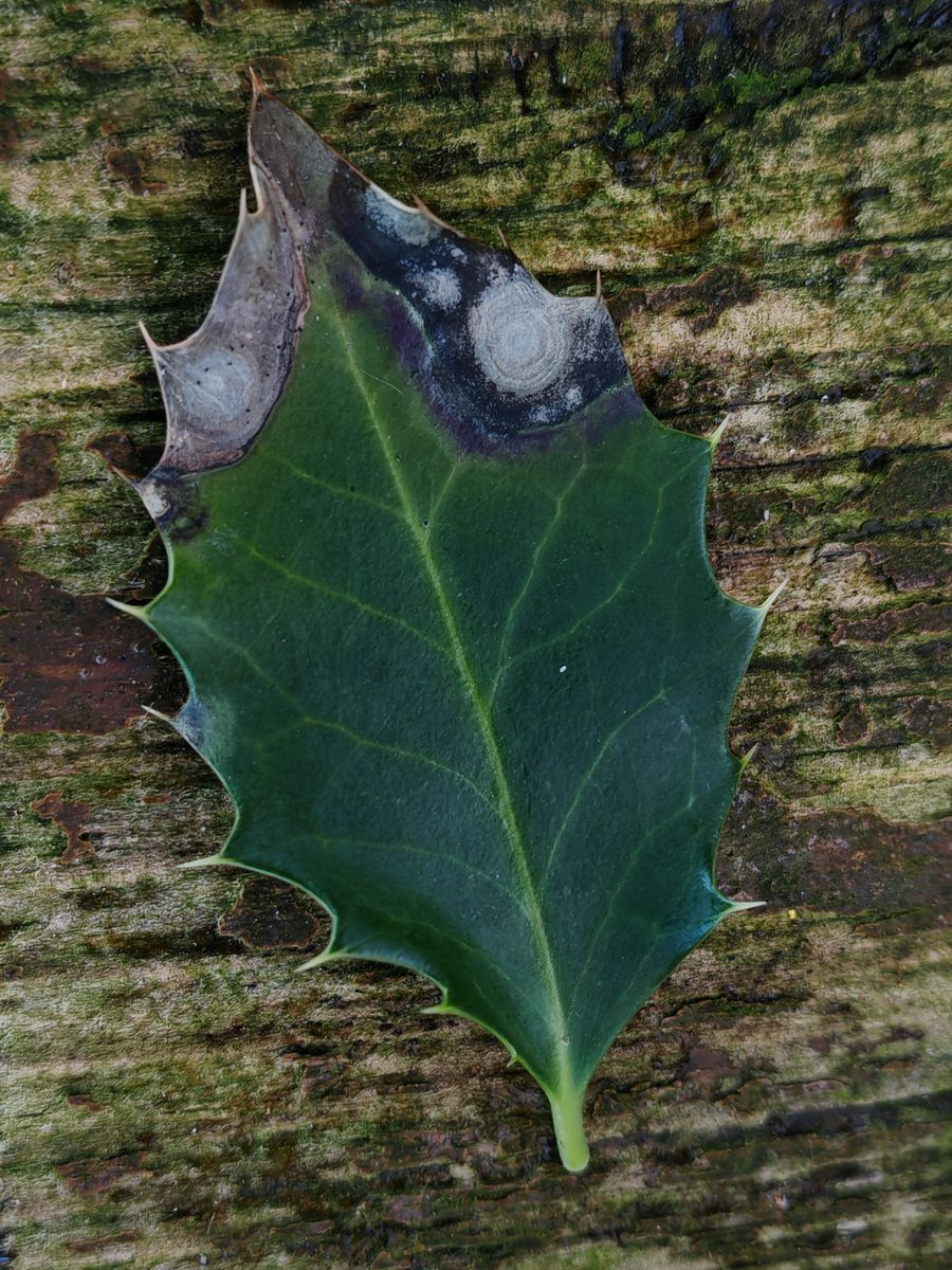 gerade eben konnte ich Blattflecken auf einer Ilex aquifolium finden.
