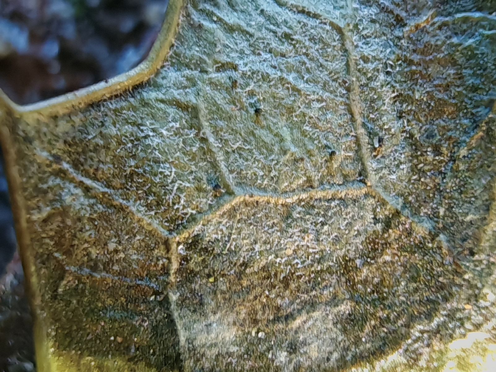 ...und auf der Unterseite des Blattfleckens waren dann Konidienträger zu sehen: