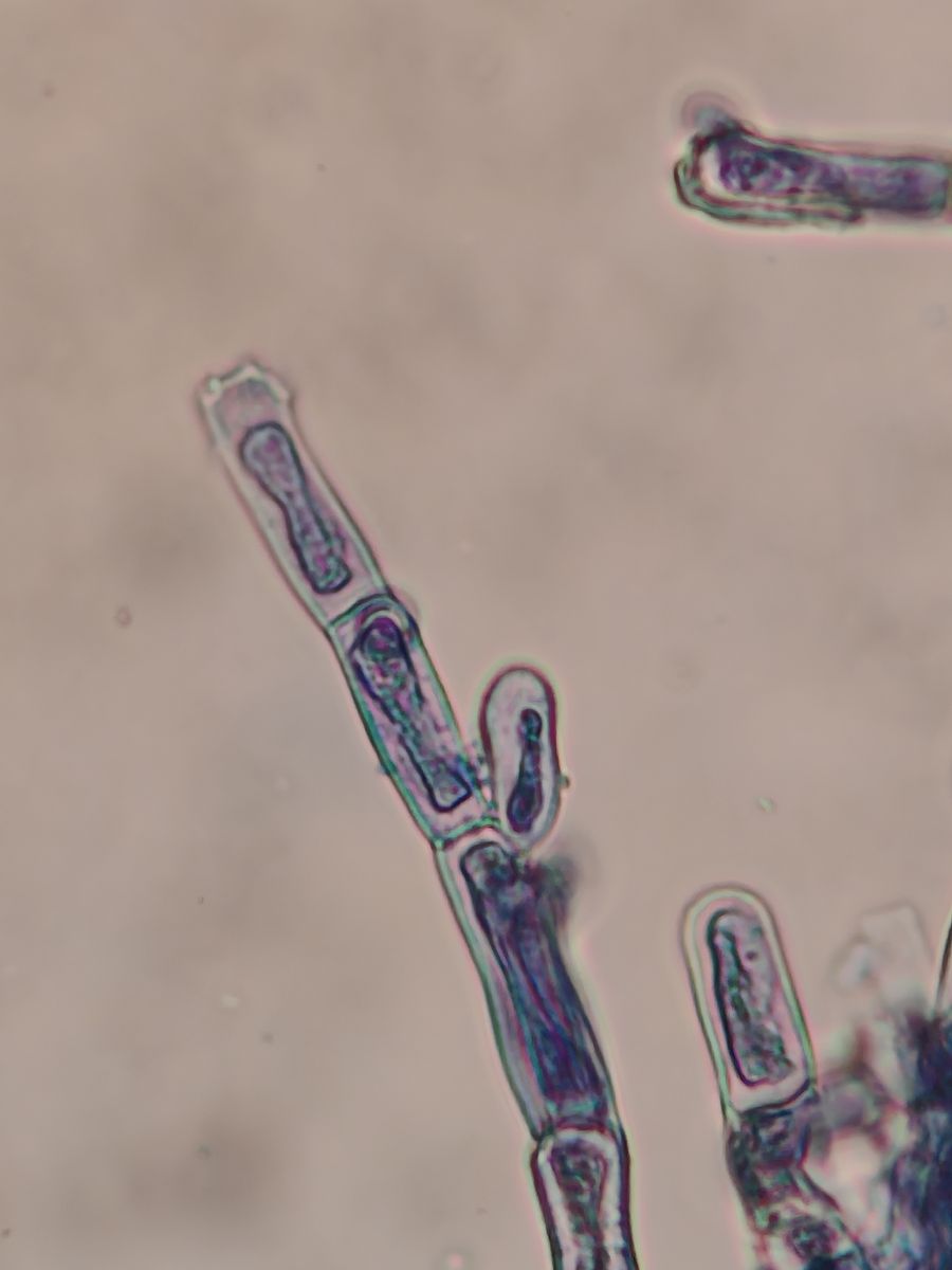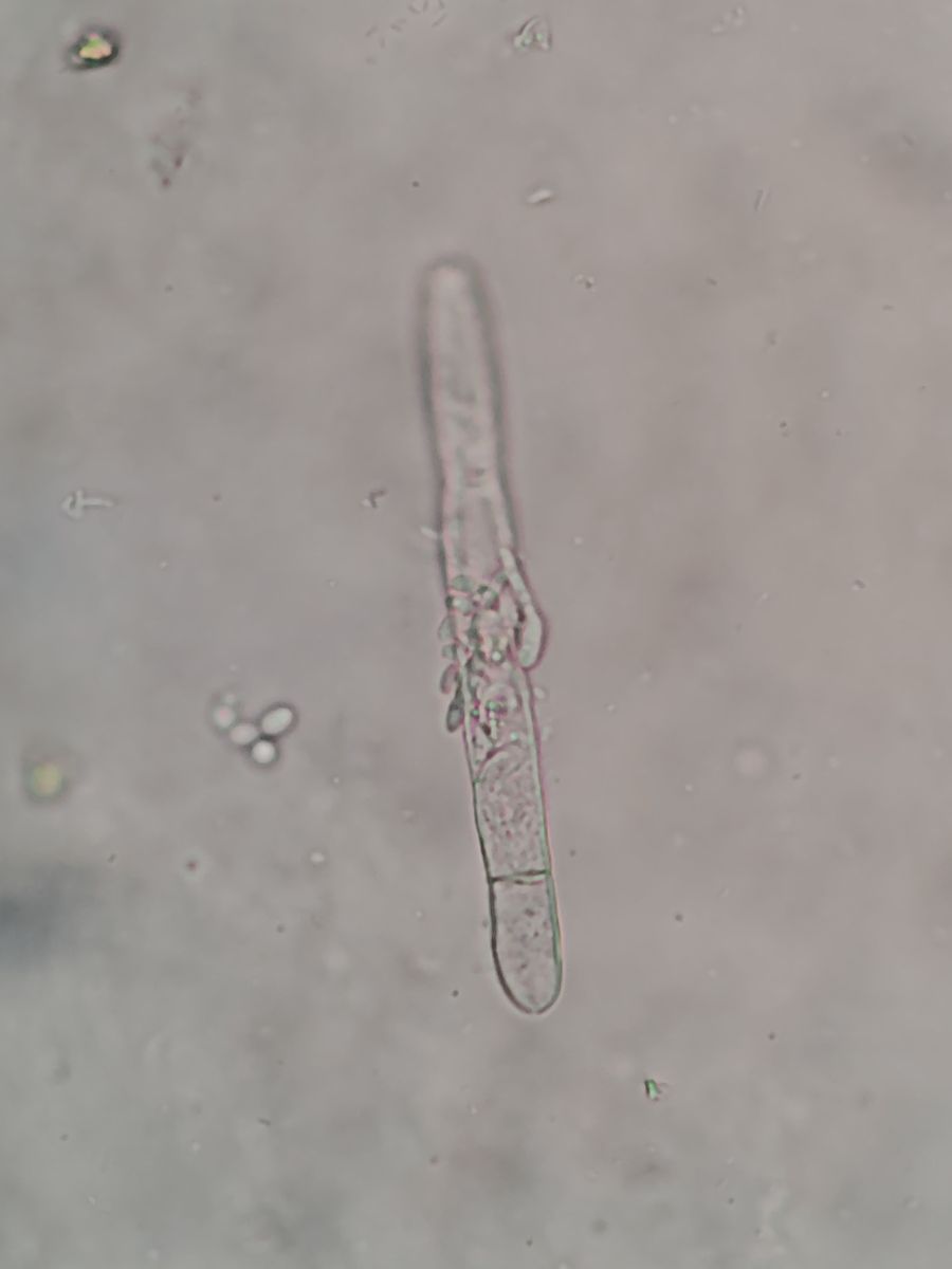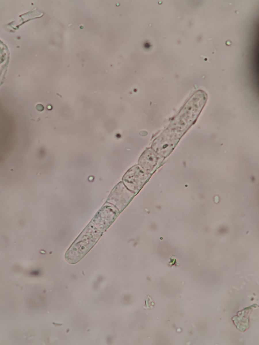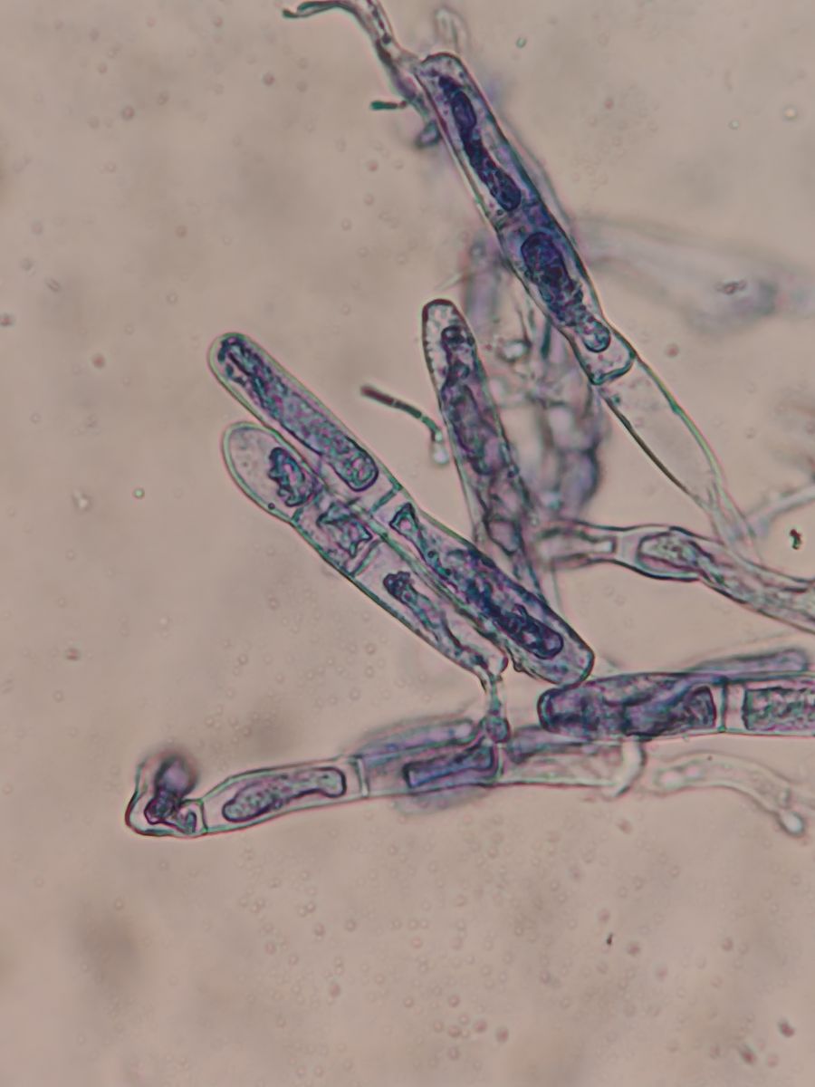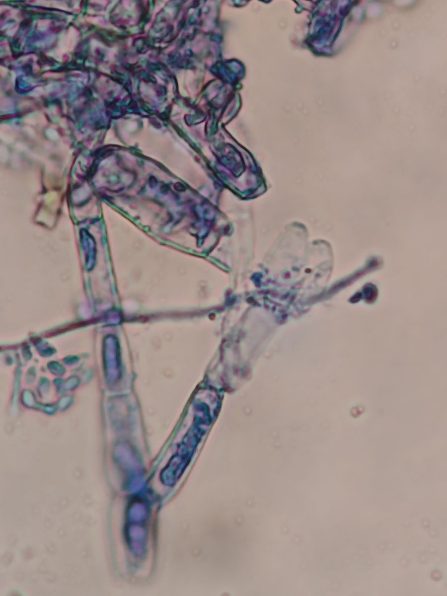 Unter dem Mikroskop sieht man dann zylindrische Konidien, die den Hyphen ziemlich ähneln, und ellipsoide Spermatien.