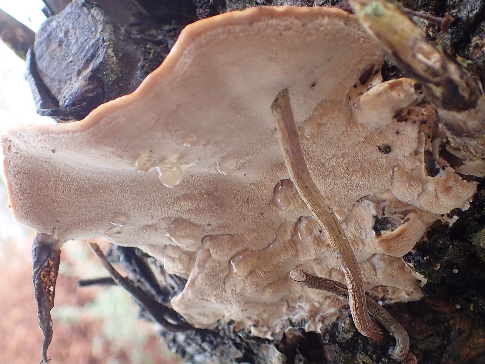 Er fühlt sich gummiartig an, die FK sind ungefähr 5 cm und mehr breit, Sporenpulver ist weiß.