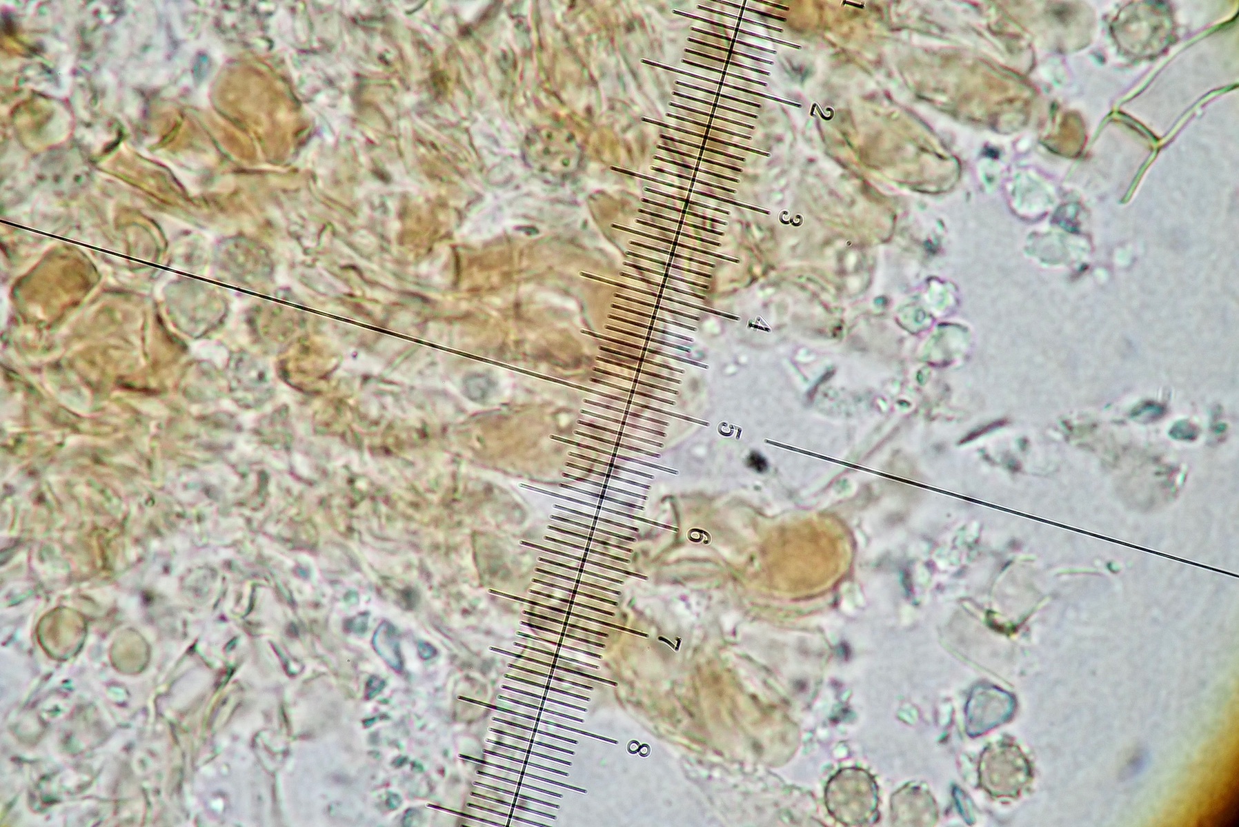 Für Tomentellopsis pusilla würde die Sporengröße passen. Allerdings finde ich zu dieser Art keine weitere Beschreibung, um mehr herauszufinden.