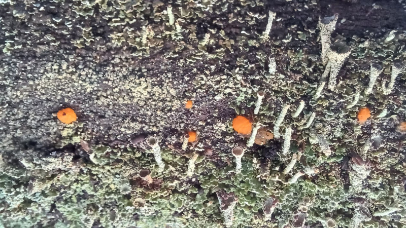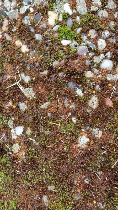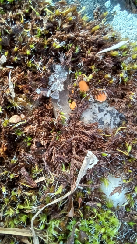 Dort, wo die Moose schon sehr schwach waren, traten sehr viele kleine Becherchen-Fruchtkörper auf. Dieses Phänomen sah ich auch schon an zwei weiteren Standorten.