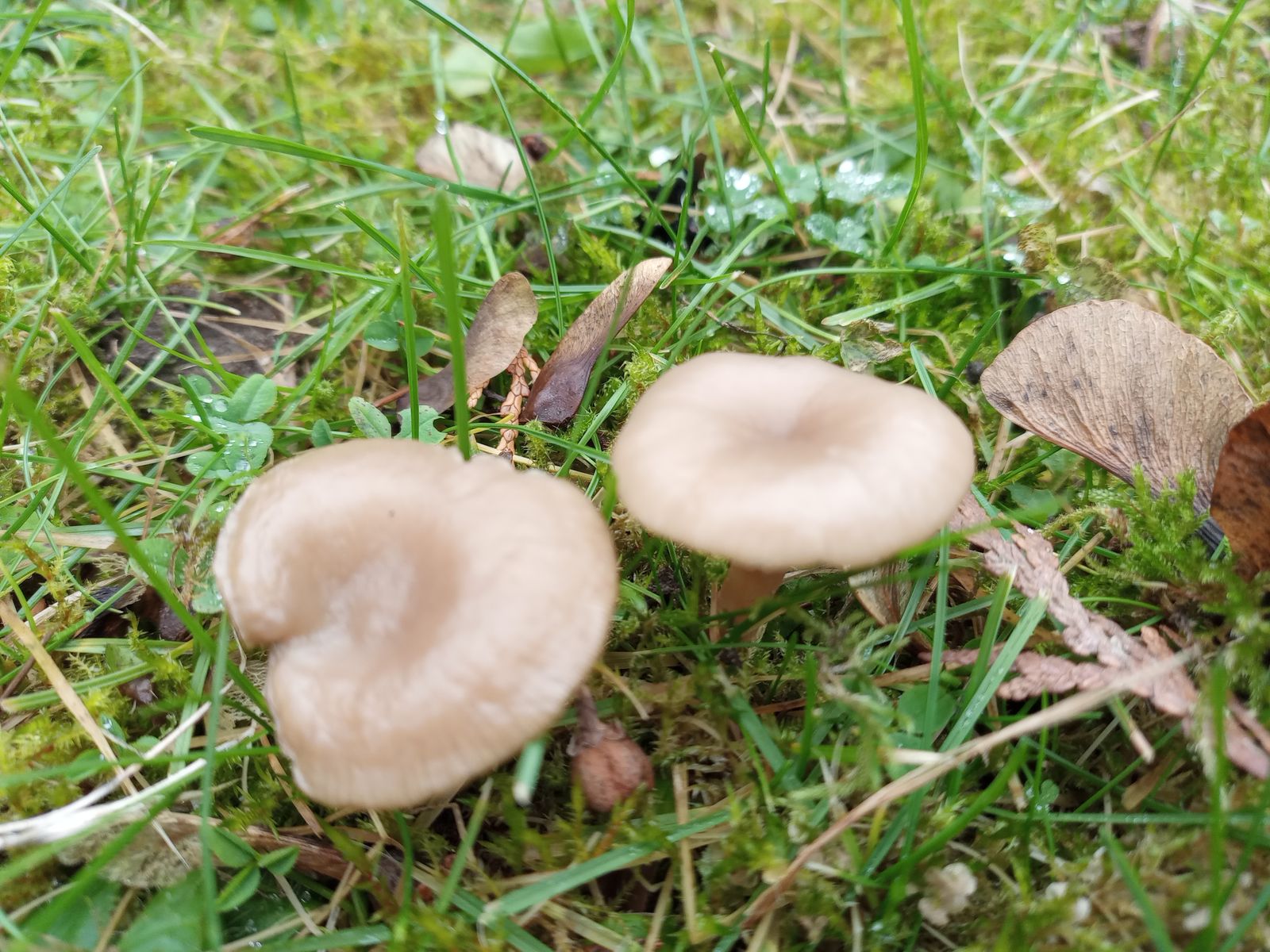 Von diesen hier fanden sich einige an verschiedensten Stellen. Der milde Geruch nach Weihnachtsgebäck (Anis) legt Langstieliger Dufttrichterling (Clitocybe fragrans) nahe.