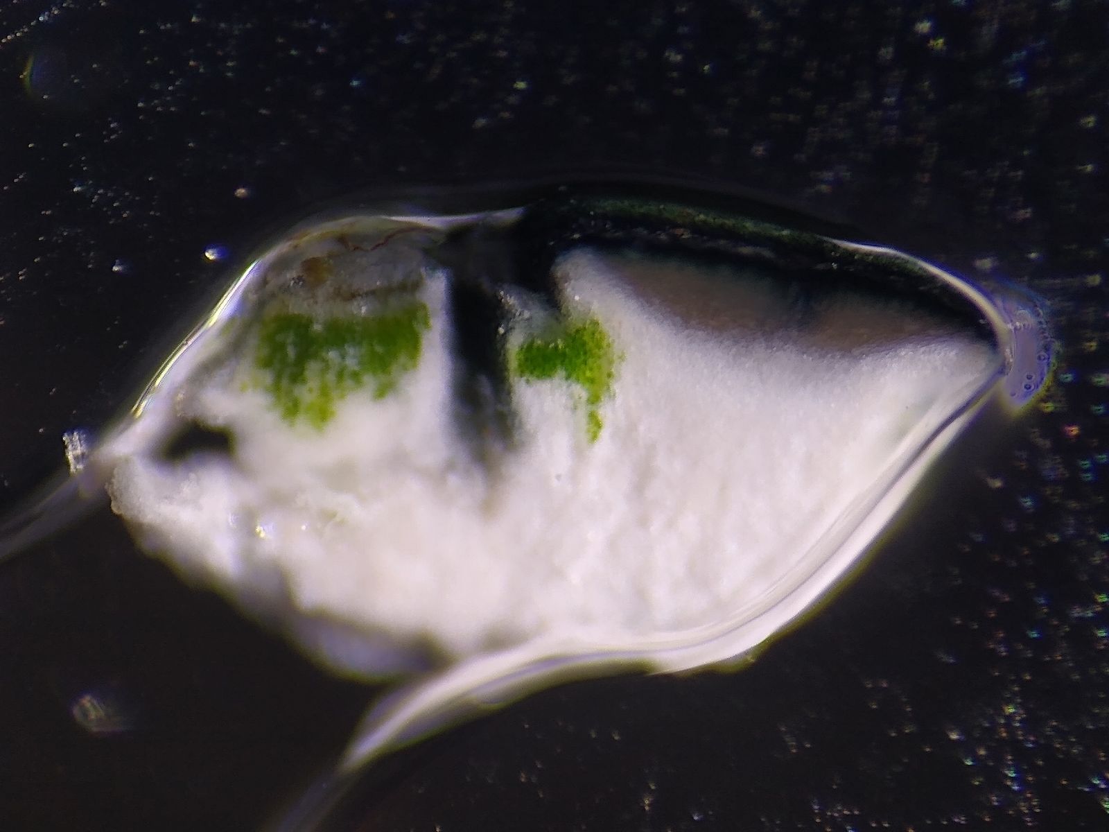 Bild 7 Mark weißlich bis rosa. Der rosa Farbeindruck findet sich auch im Durchlicht unter dem Apothecium nach Quetschen wieder.