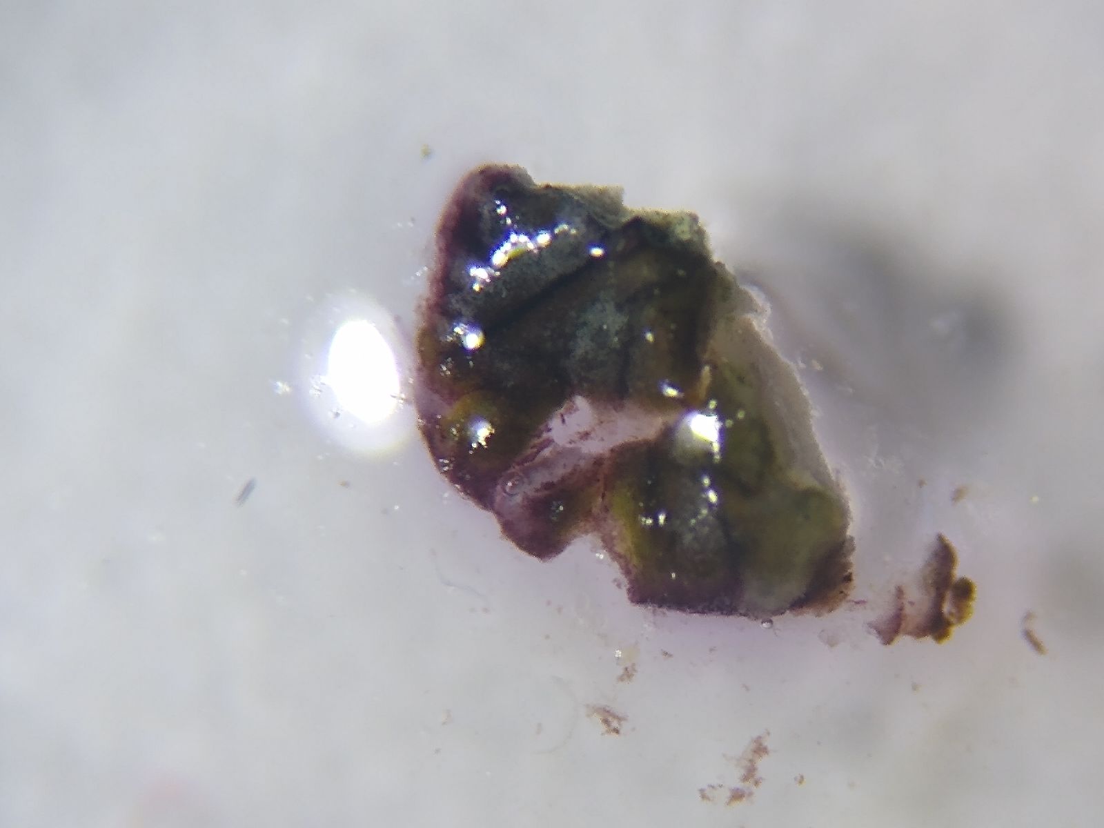 Bild 17 Kontrolle eines Probenkrümels in HNO3: der Cortex reagiert ebenfalls N+ violett.