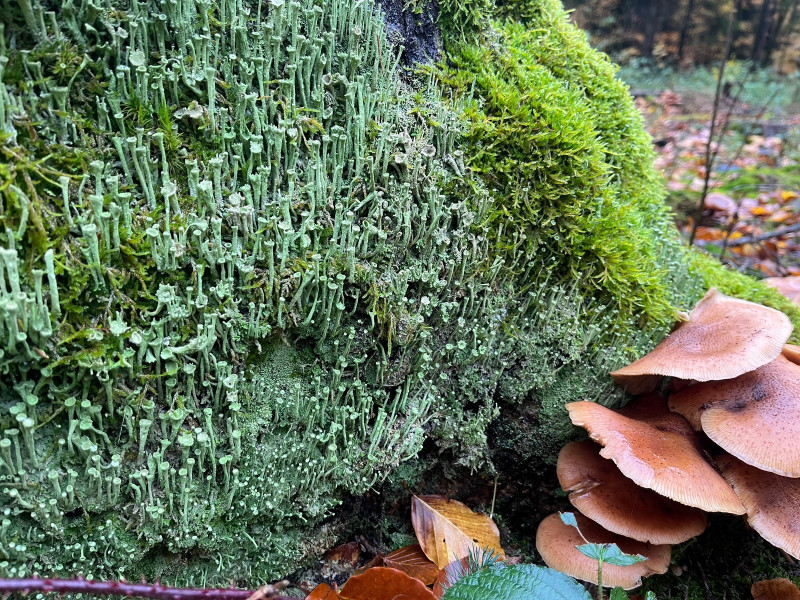 Auf dem Rundweg dort um den Steinbruch-See gab es Flechten en masse. Cladonien, Parmelia und Rhizocarpon-Arten und, und, und...