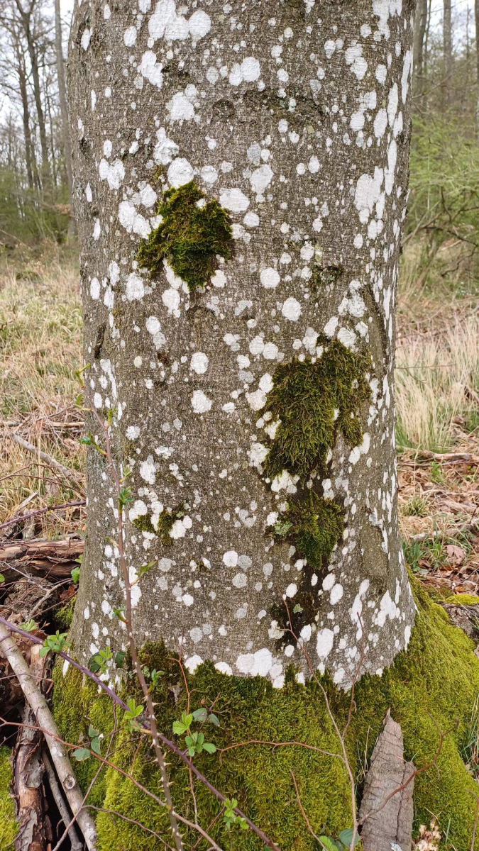 bei einer unserer letzten Exkursionen trafen wir auf einen seltsamen Bewuchs an einer Buche. Sie war von unten bis in über 4 m Höhe dicht mit weißen "Filz"? bewachsen.