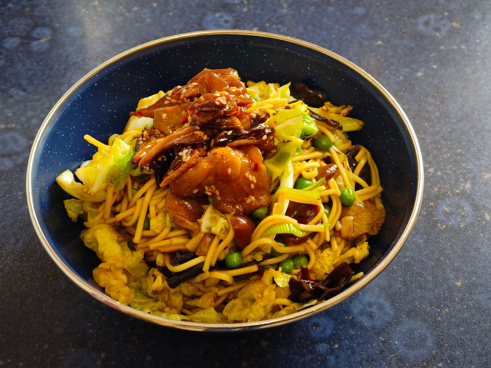 Diesmal landeten sie als Topping auf gebratenen Nudeln mit Gemüse, Judasohren und Samtfüßen. Hat hervorragend gepasst.