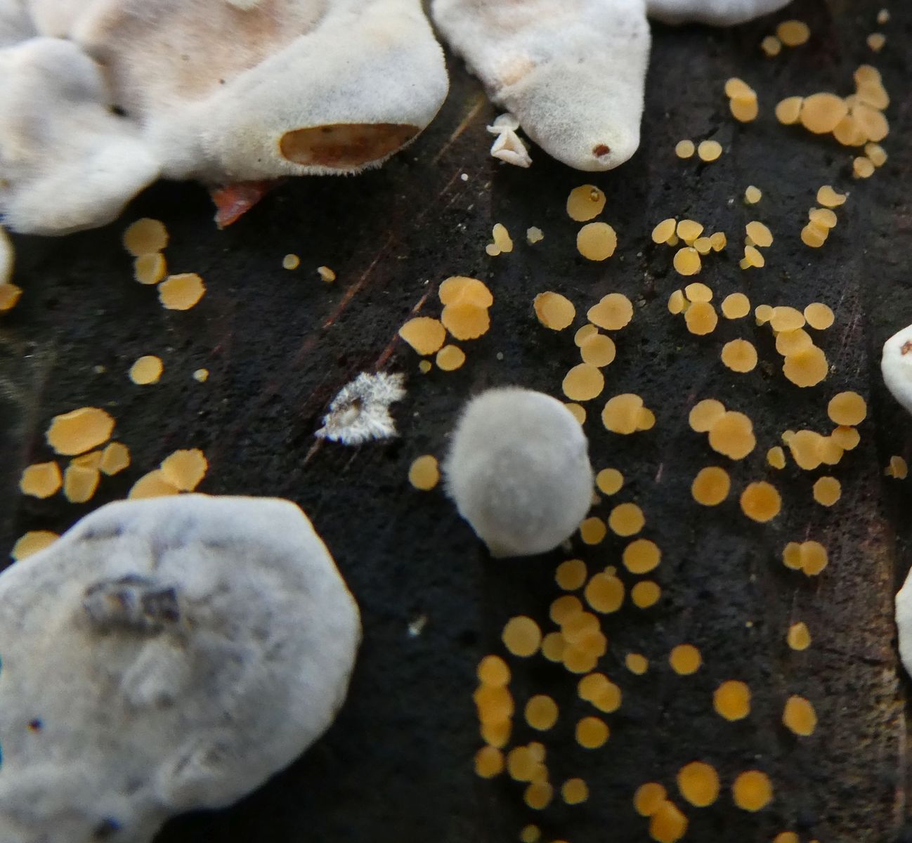 Zunächst zweifle ich an meinen Bestimmungen, dann stolpere ich über diverse Namen Calycella, Calycina, Bisporella.