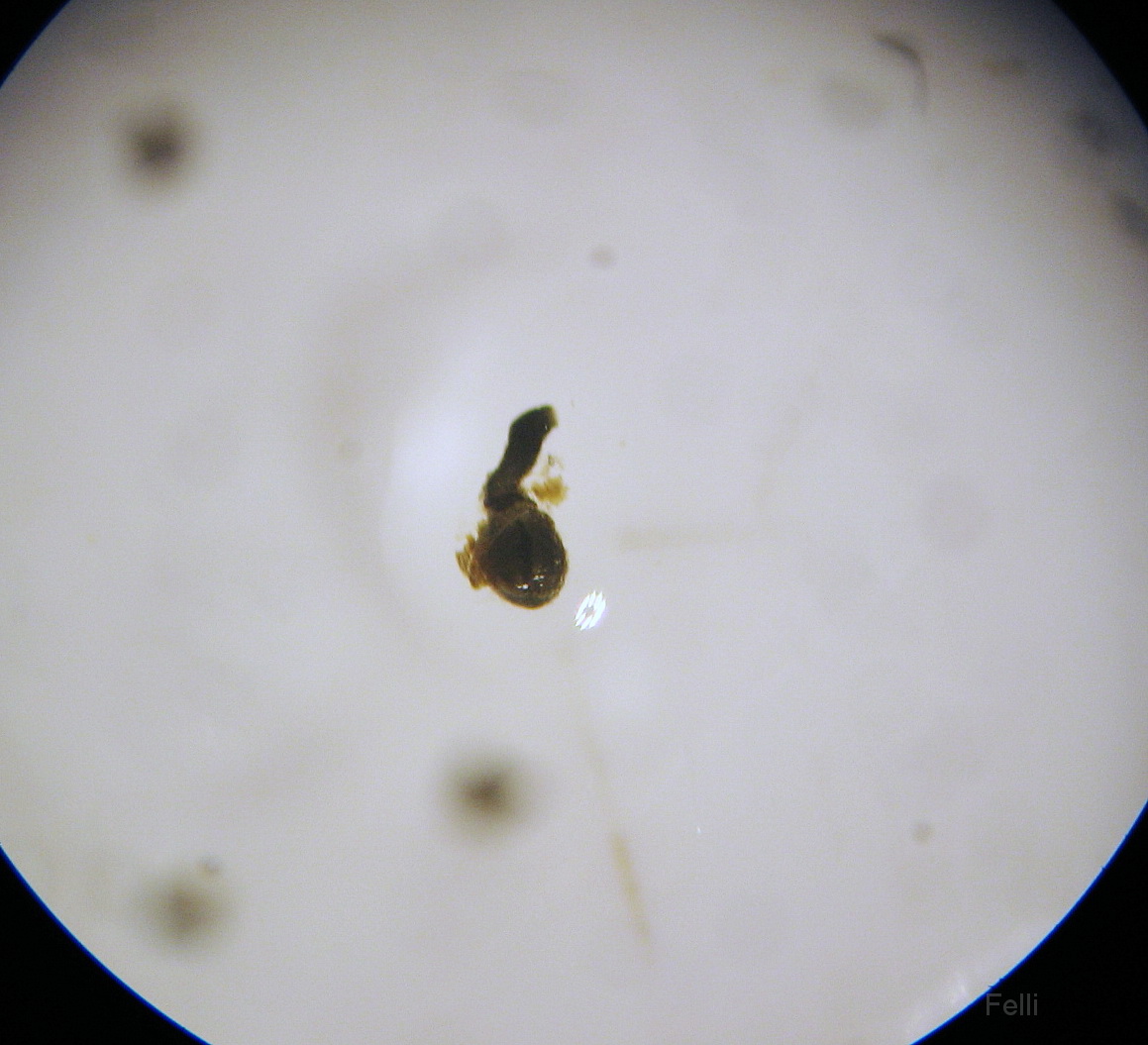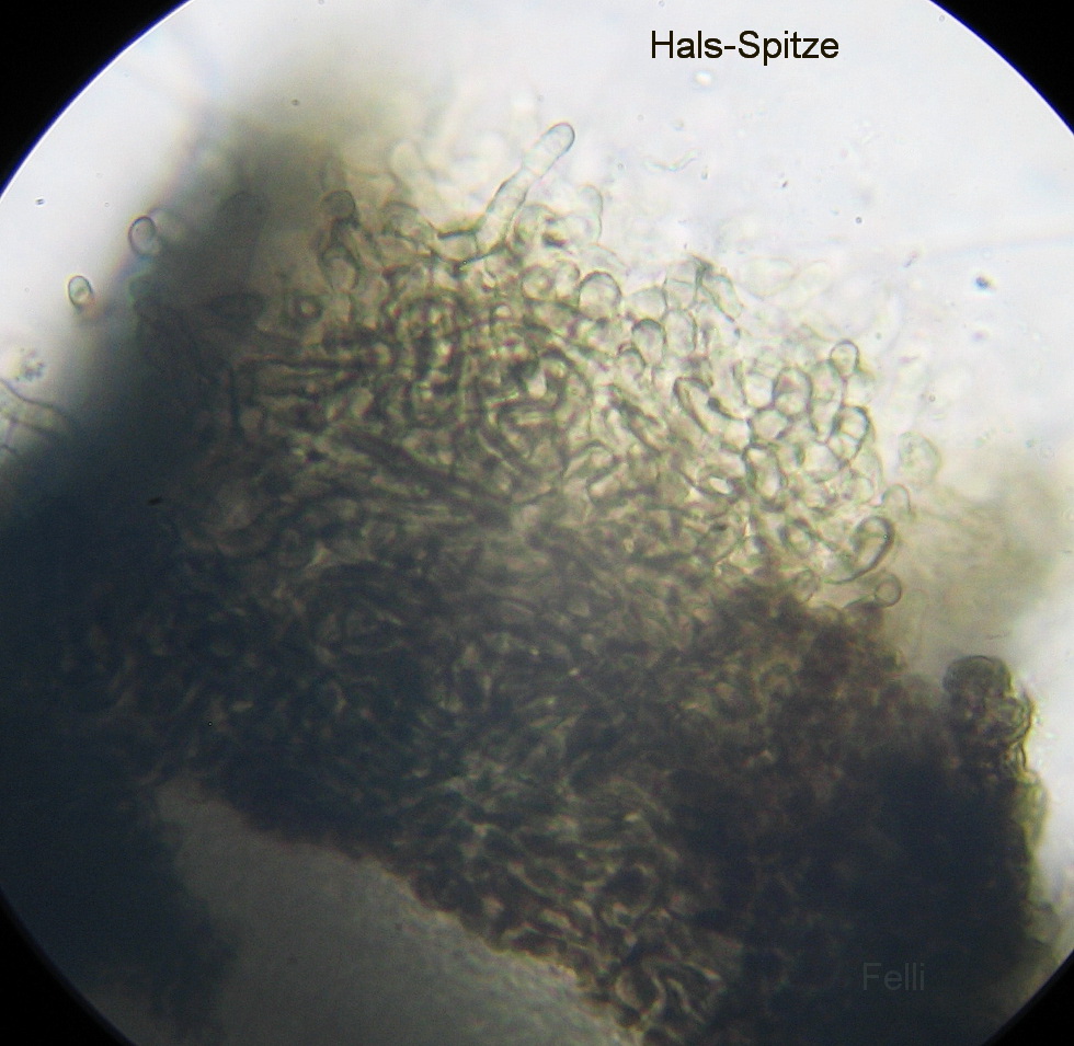 Perithecium birnenförmig mit relativ langem Hals, Halsspitze mit kleinen septierten, dunkelrandigen Haaren?
