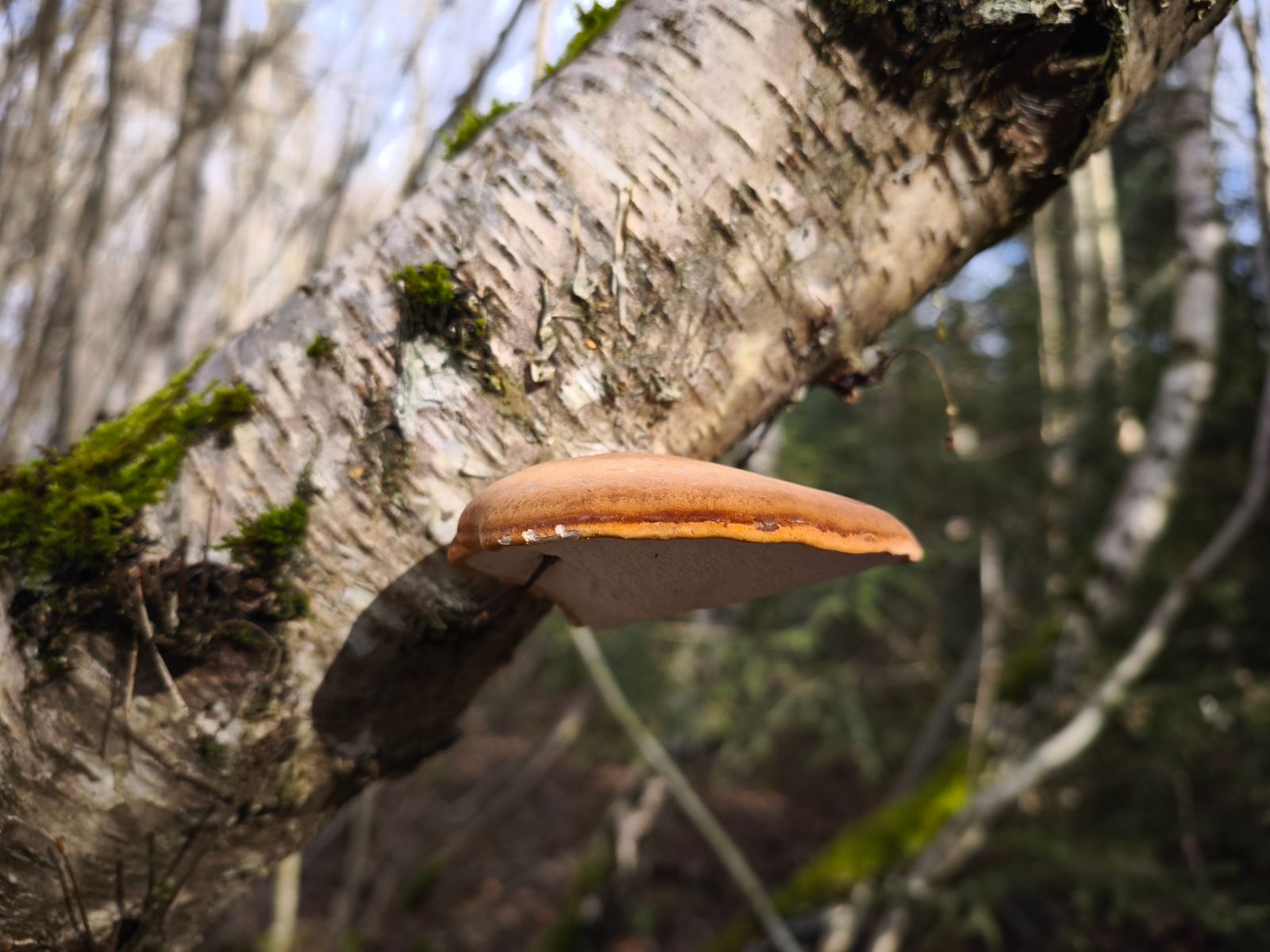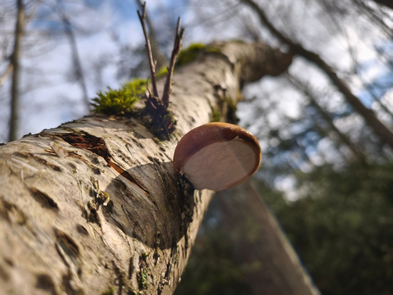 Ein neues Habitat des Birkenporlings hat sich beim Streifzug durch ein bisher unbekanntes Areal entdecken lassen. Überraschenderweise scheinen sie dort frisch zu fruchten. Ich war bisher der Meinung, dass die Art nur im Herbst bis Spätherbst frische Fruchtkörper produziert. Diese hier müssen allerdings frisch sein - perfekter Zustand. Beim letzten Bild sieht man links einen Fruchtkörper aus dem Herbst. Dieser ist deutlich dunkler gefärbt und fleckig in der Porenschicht.