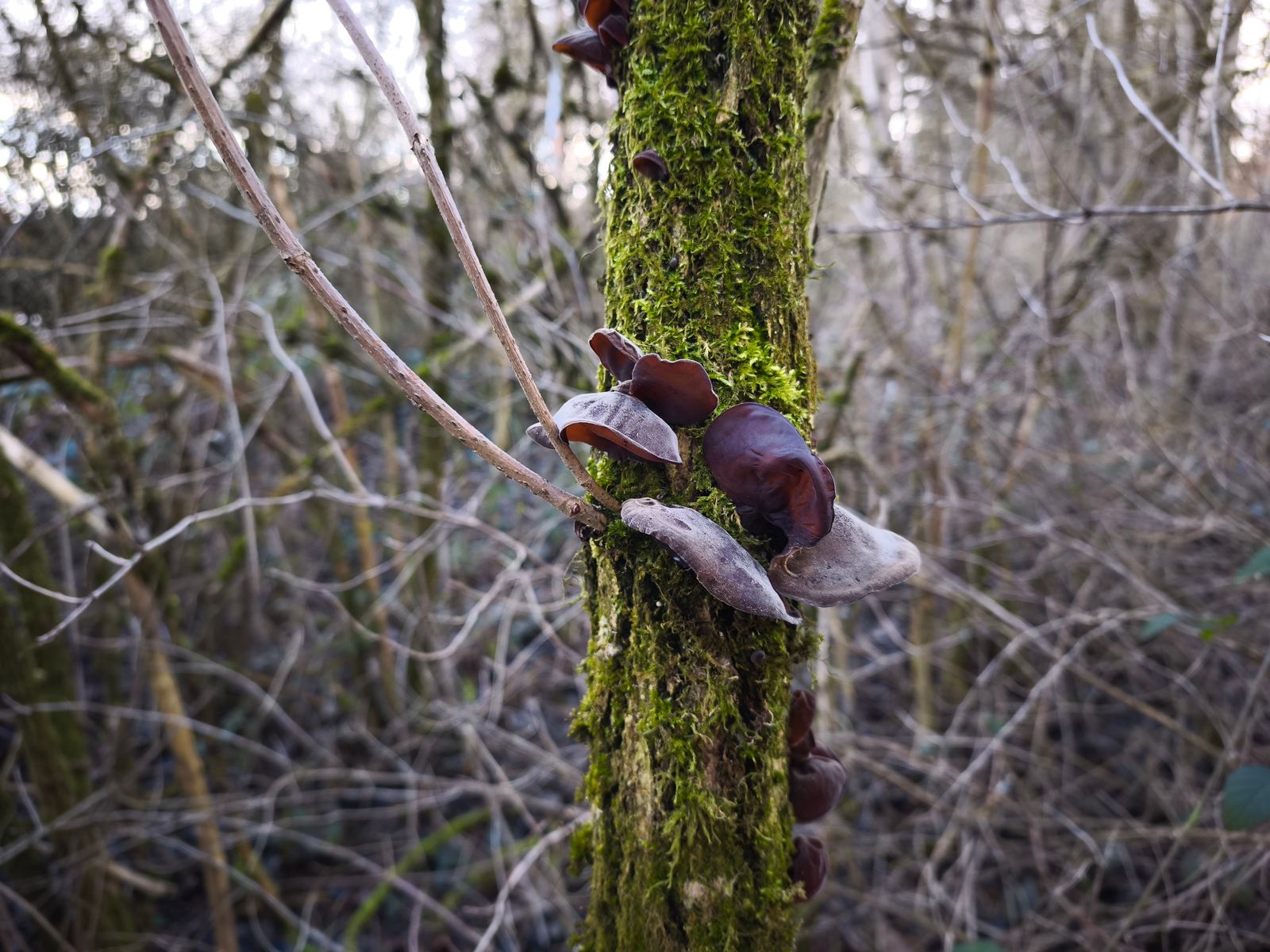 Dann kam leider eine Durststrecke für den Rest des Streifzuges. Auf dem Heimweg hatte ich jedoch noch die Idee, mal durch die Schlehen-Hecke zu schlüpfen, welche den Weg zum Wald säumt. Schön dumm, dass ich das nicht längst mal gemacht habe. Dahinter versteckt sich tonnenweise Holunder. Und was findet man an Hollunder? Judasohren - in Massen!