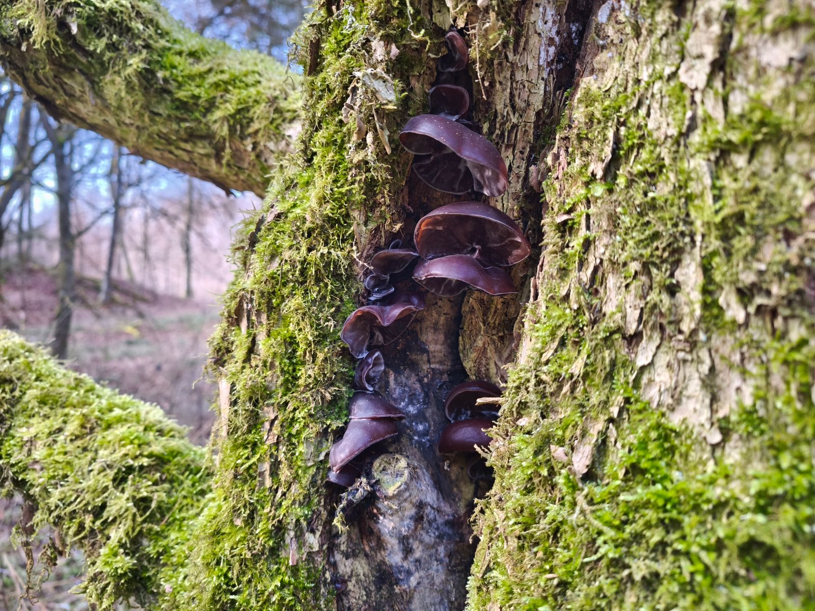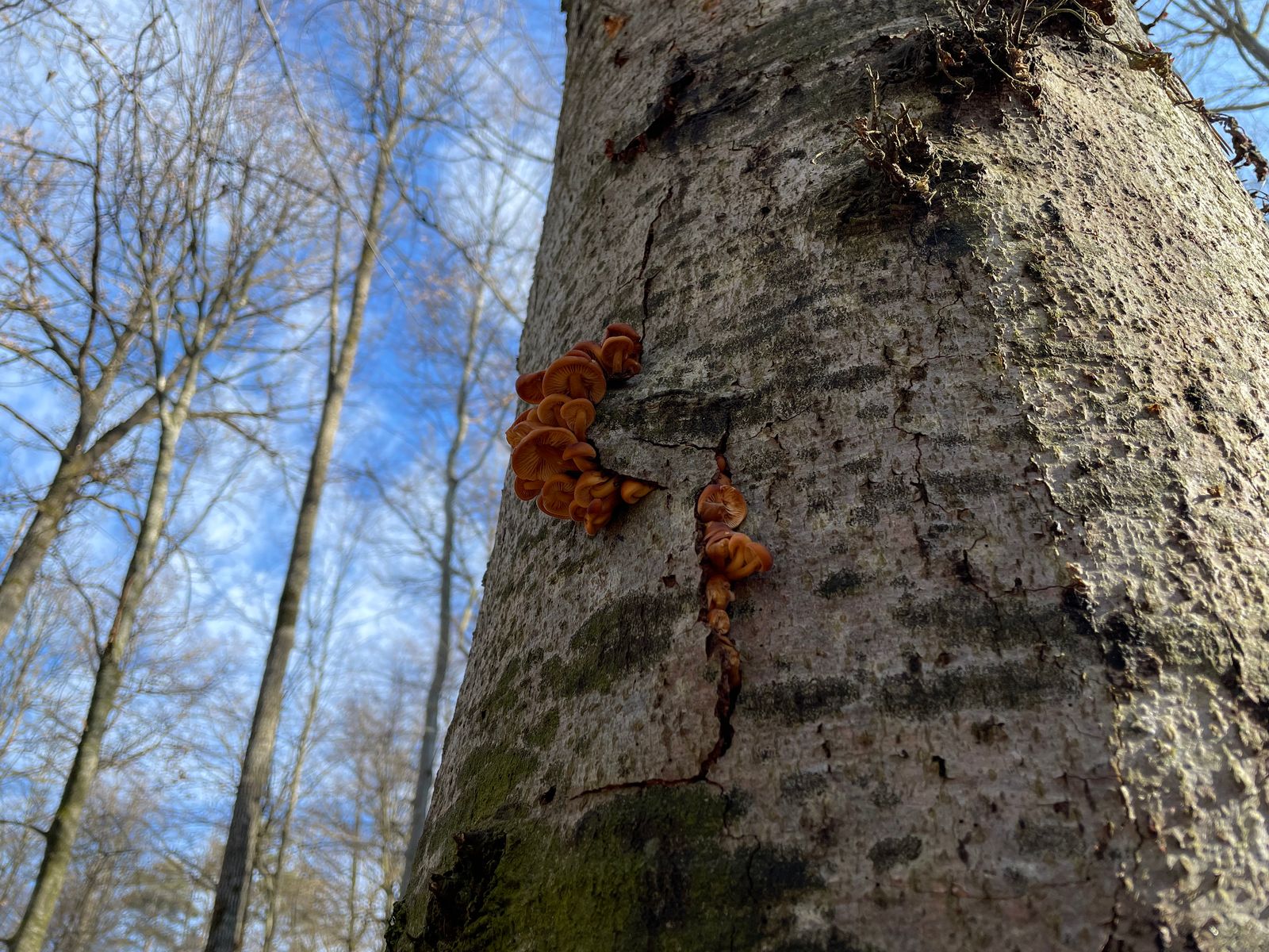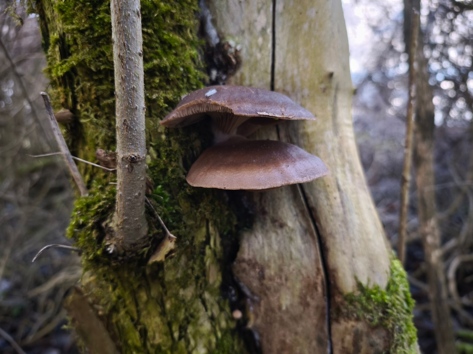 Und nicht nur das: An einem Holunder fanden sich sogar Austernseitlinge in gutem Zustand. Klein aber fein.