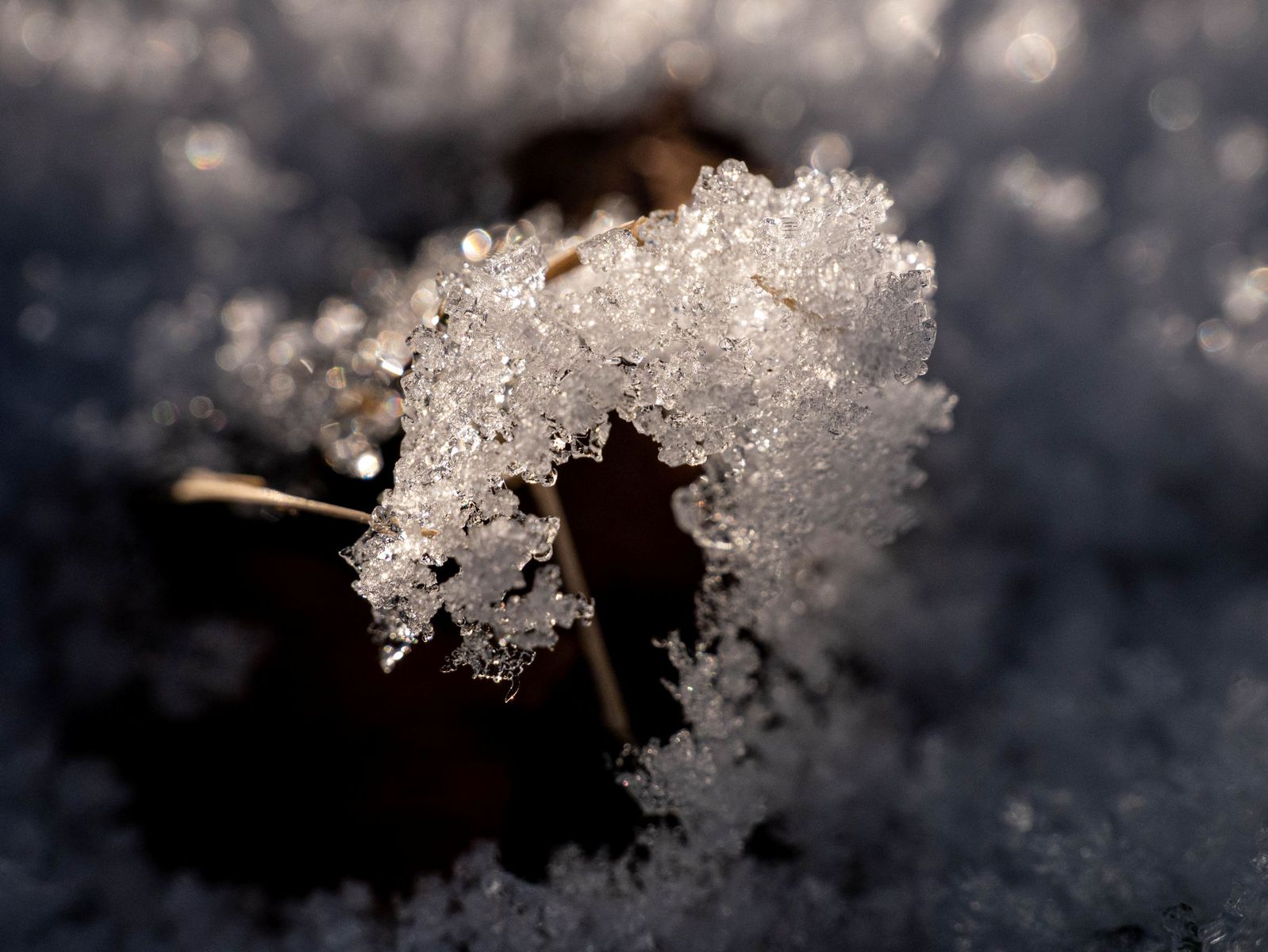 Unterwegs leuchteten mich Schneekristalle an - also runter auf alle Viere und knipsen was dass Zeug hält