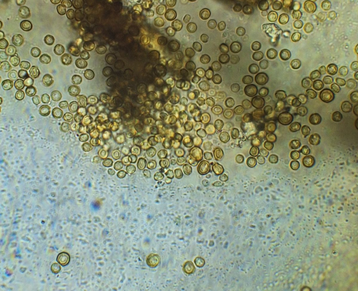 Sporen, mit 2,5-4 µm etwas kleiner als in der Literatur für brunneola genannt