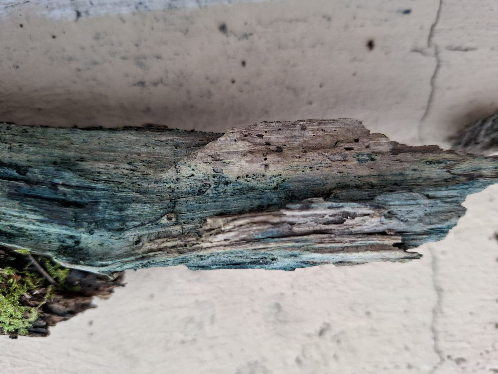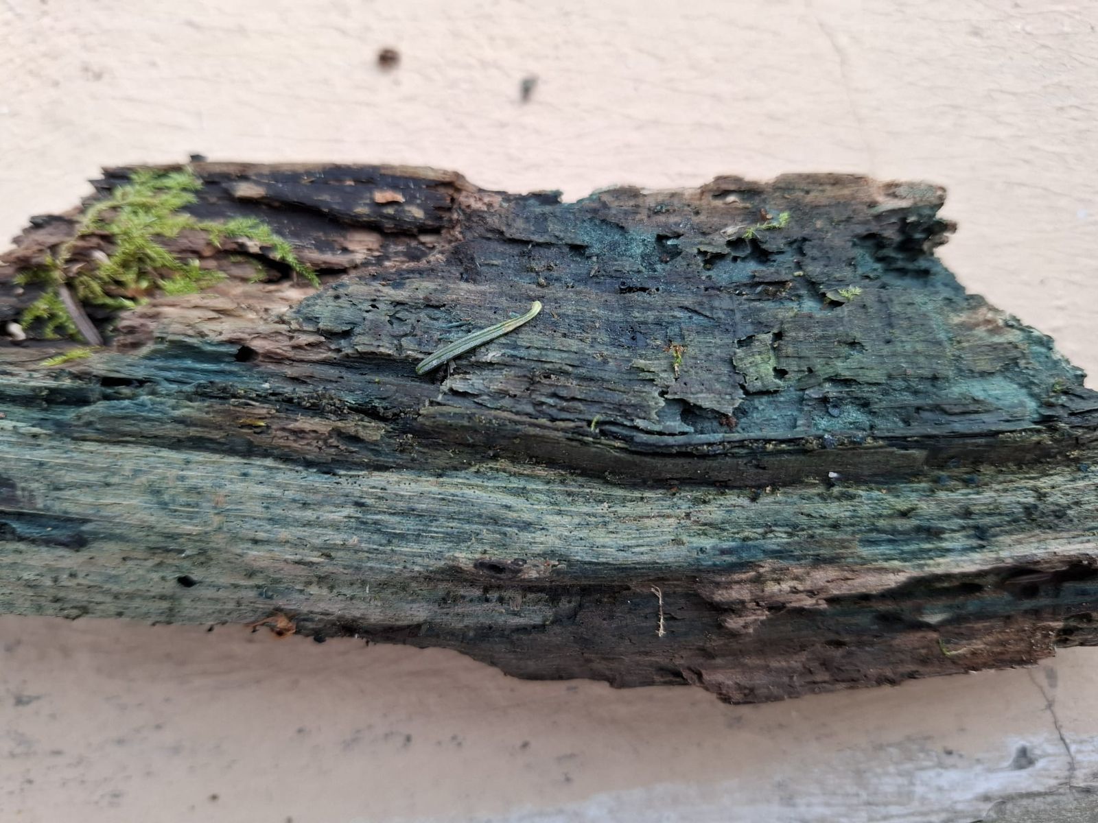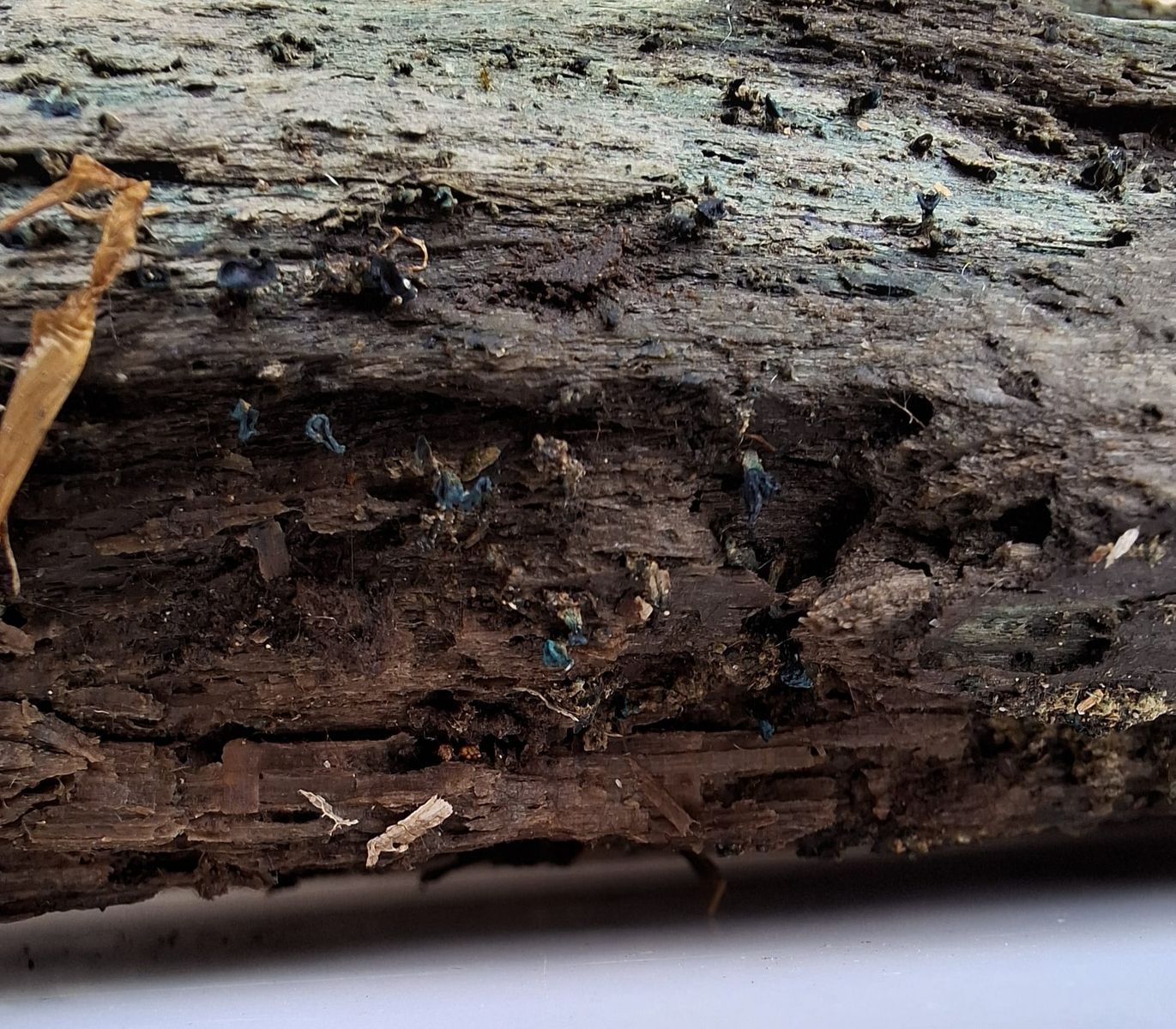 heute war ich noch einmal im Wald wegen meinem Stachelbart und etwas blaues auf dem Boden zog meinen Blick an. Es war ein altes Stück Holz und ich nahm es mit, weil mir die Farbe so gut gefallen hat.