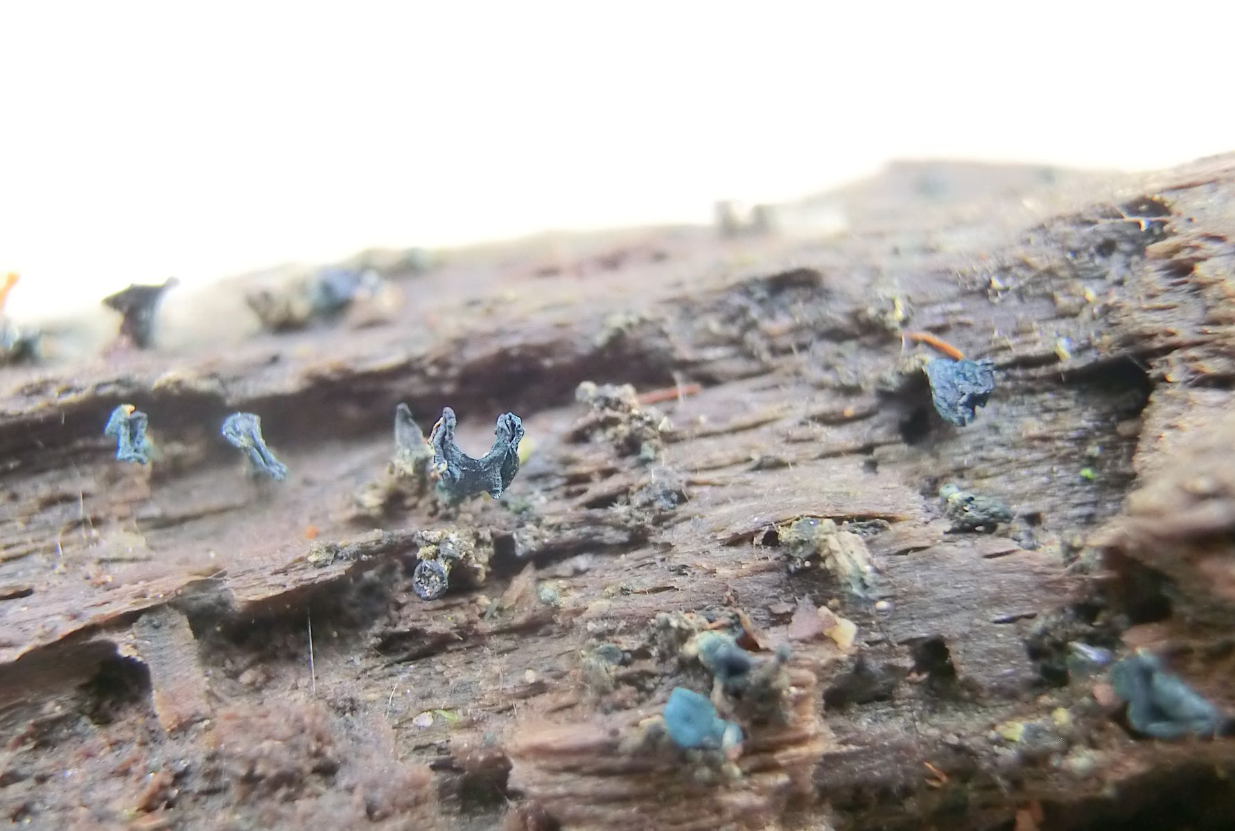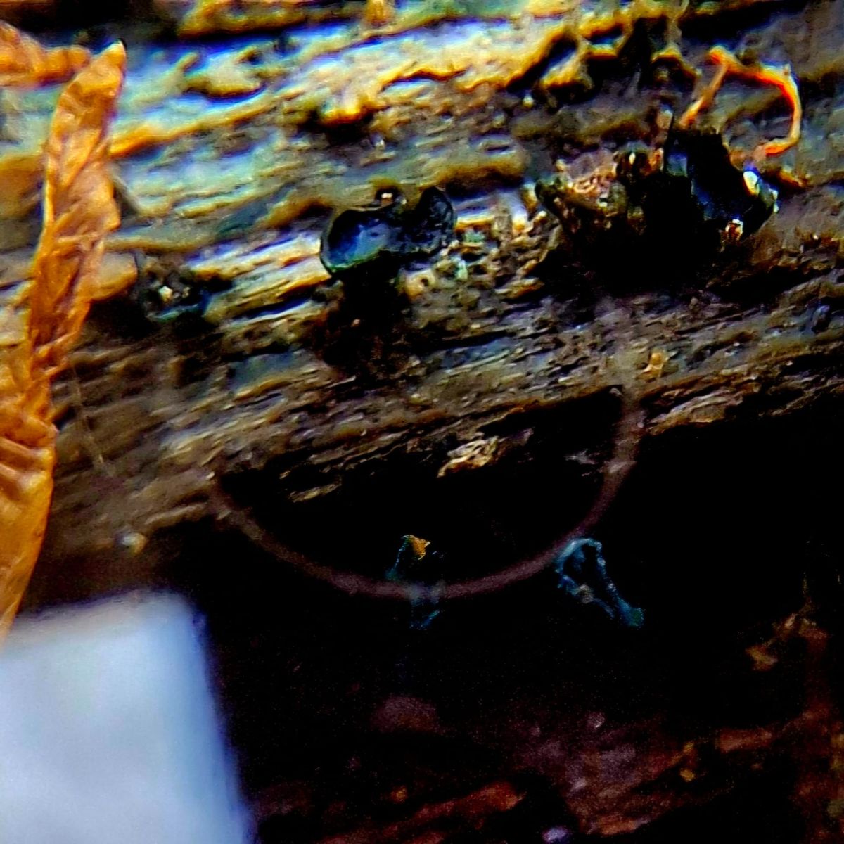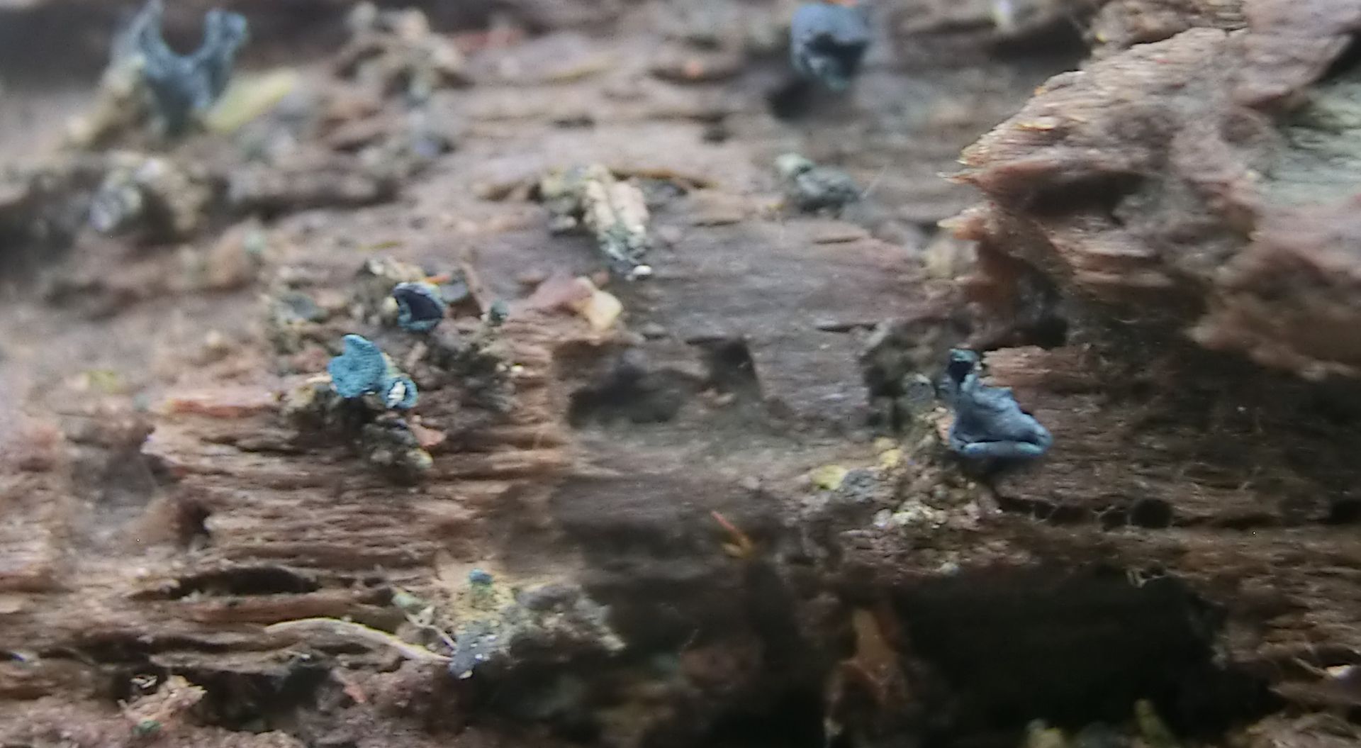 Zuhause habe ich ihn mit der Lupe genauer betrachtet und einige blaue Miniminis (Pilze?) gesehen. Habt ihr eine Ahnung was es sein könnte? Bitte entschuldigt die schlechten Fotos - ging leider nicht besser, weder mit Handy noch mit Kamera.