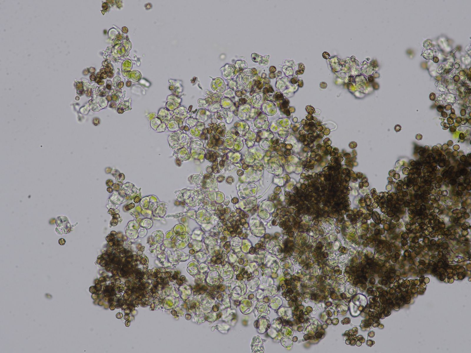 Weiterhin keine stabförmigen Algen. Die Form der Sporen kann man zwar mit etwas gutem Willen auch als überwiegend elliptisch bezeichnen - denn wo gibt es in der belebten Natur schon mathematisch perfekte Kreise?