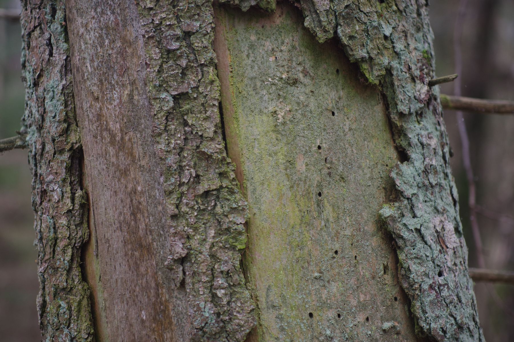 • Eine habe ich noch. Auch in feuchtem Wald mit Schwarz-, Grauerle, Fichte, Eiche, Esche, Espe. An toter Fichte auf dem Holz.