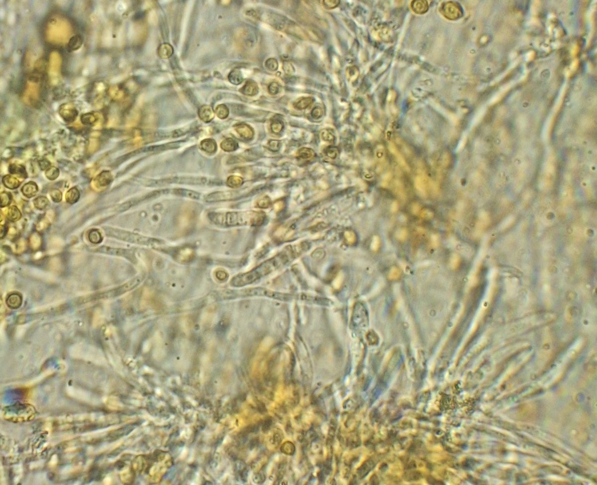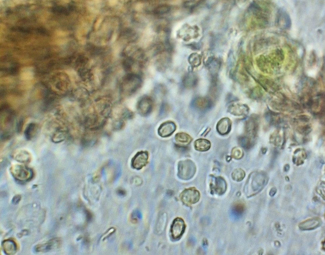 Sporen von rund 2,5-4 µm bis zu 3*6 µm länglich, rauhe Oberfläche