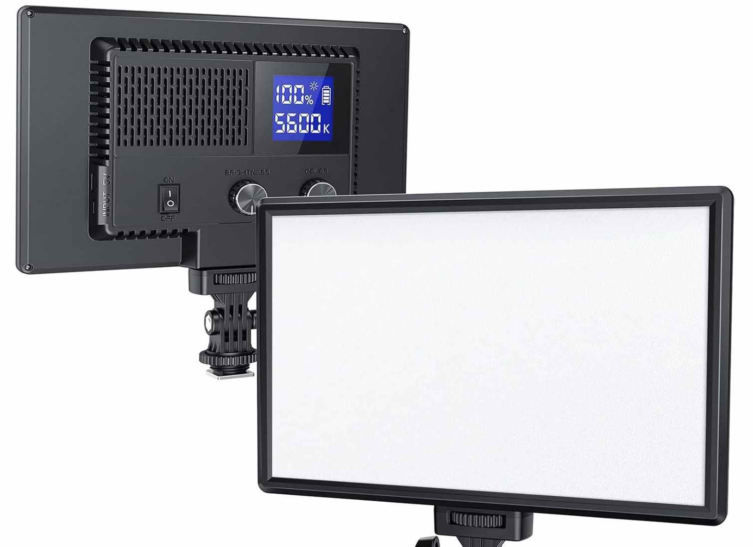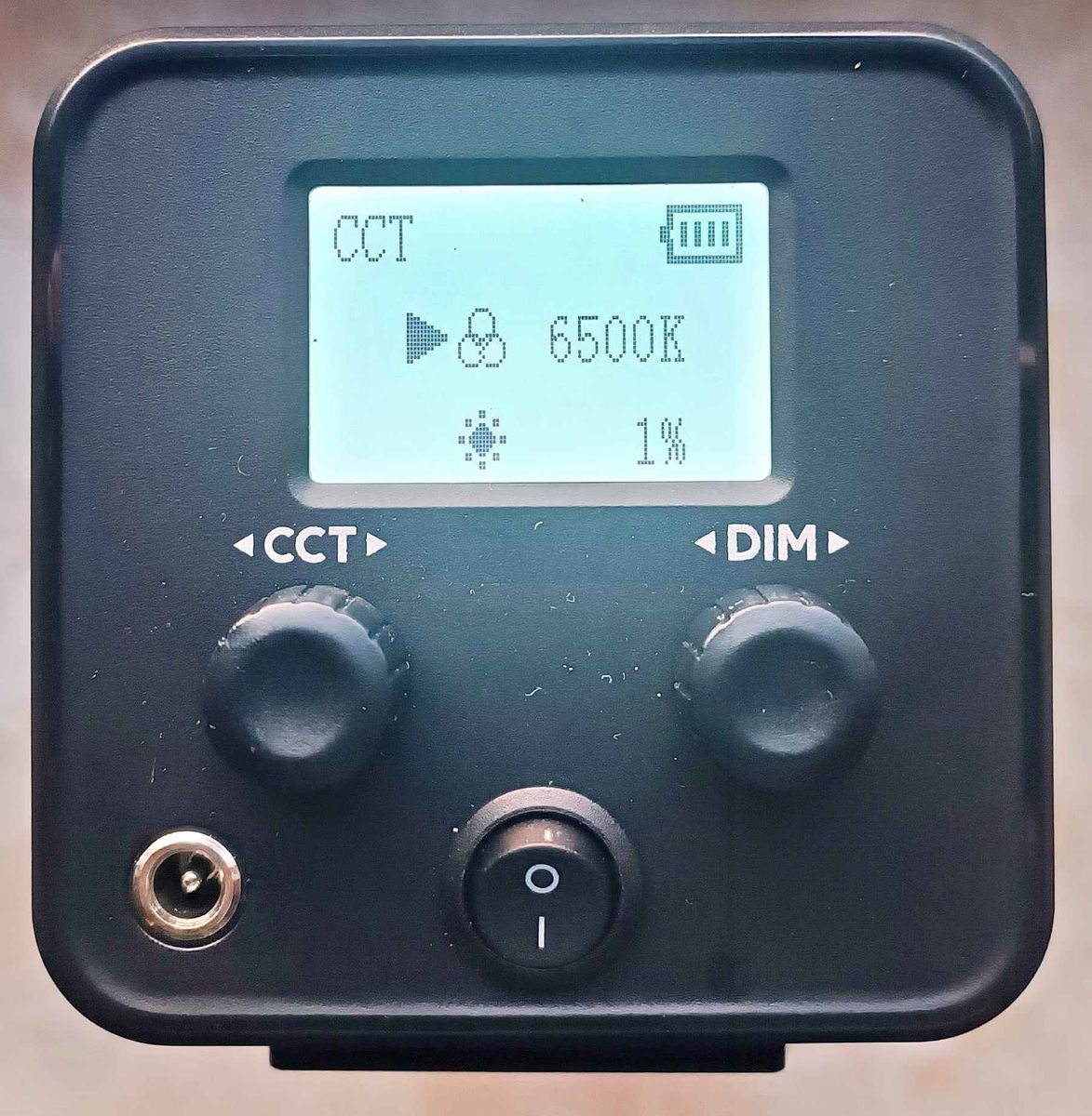 Per Drehrad ist der Farbwert, bis 6500k, wählbar. Die Helligkeit ist ebenfalls der Drehregler stufenlos in 1% Schritten wählbar.