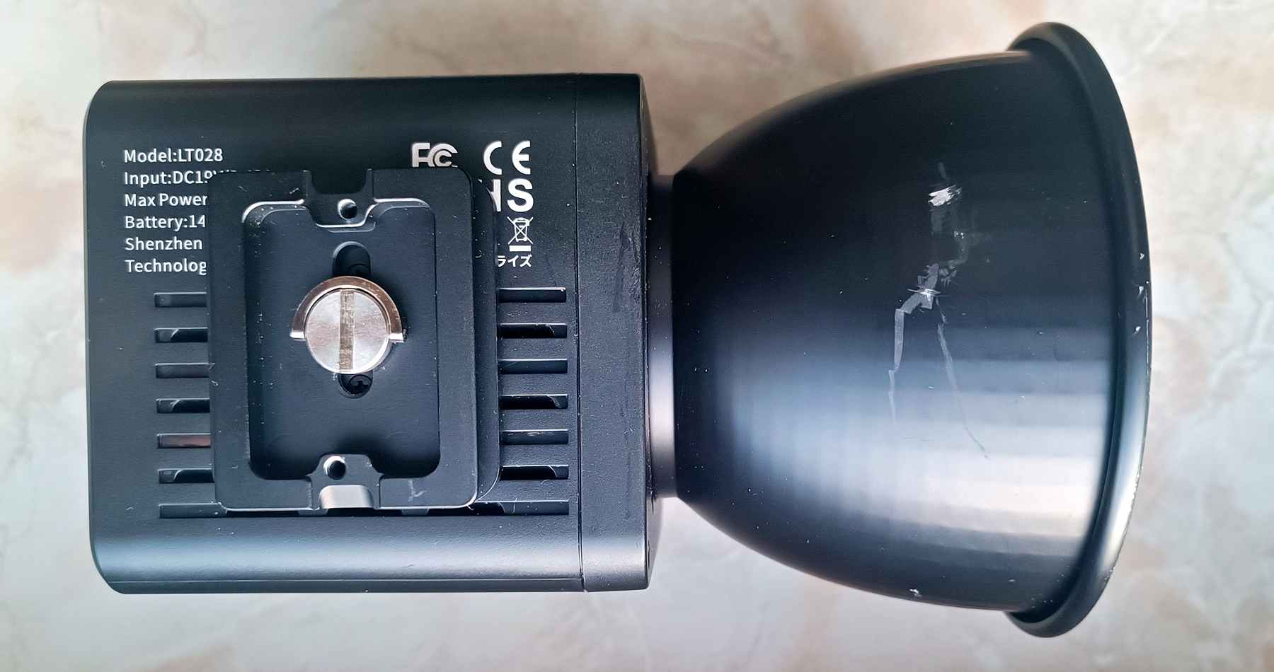 Die Lampe kann mit einer Schnellwechselplatte versehen werden, so ist sie auf allen meinen mitgeführten Stativen montierbar.