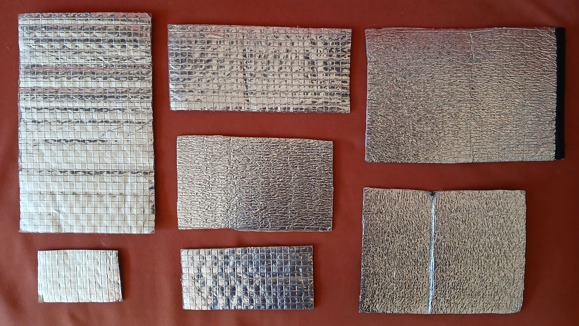 2 mm Schaum-PVC-Platten habe ich da. Mal sehen, ob eine oberflächenstrukturierte Alufolie gibt. So etwas in der Art.