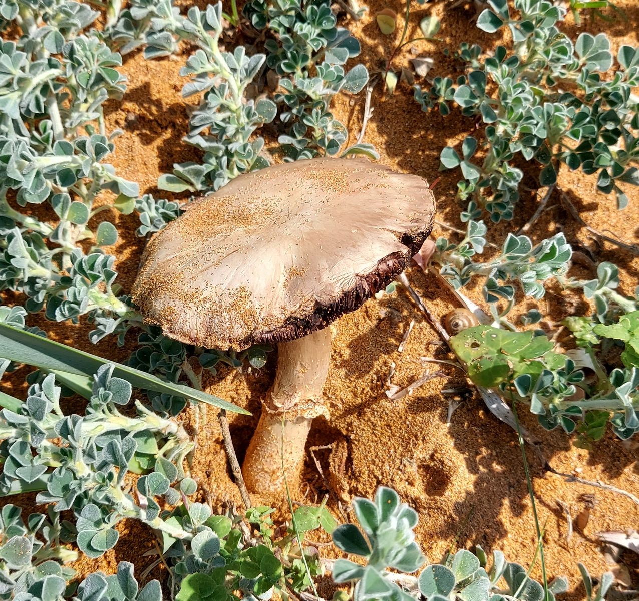 I have found an Agaricus sp. at a touristic sand dune which I am trying to identify from the macro and micro.