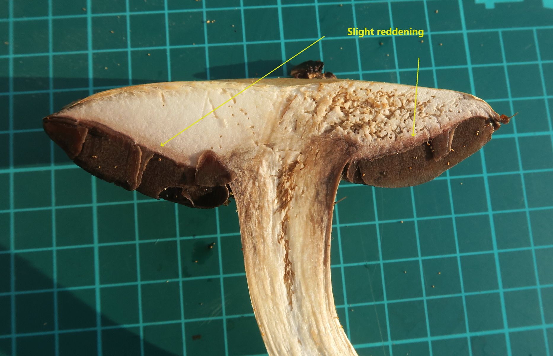 - On cutting in half there was no reaction but a little redding at the flesh under the gills and cuticle.