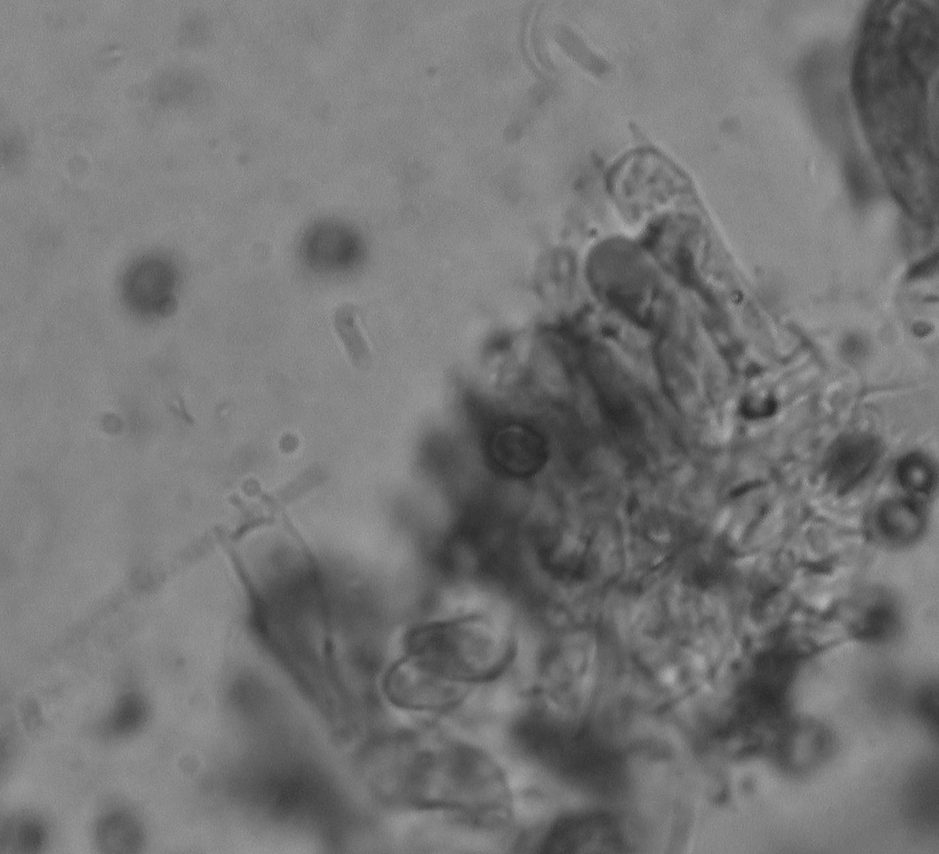 Cheilocystidia not seen but maybe not distinct or deteriorated.