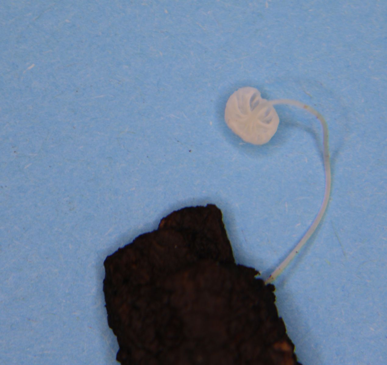 ah, mir fällt ein, daß ich eine Information unterschlagen habe, die wohl wichtig ist: ich habe den Fruchtkörper gefunden, indem ich die Streuschicht des Waldbodens beiseitegeschoben habe. Der Pilz war also vorher völlig bedeckt, was den reinweißen Hut erklären könnte.