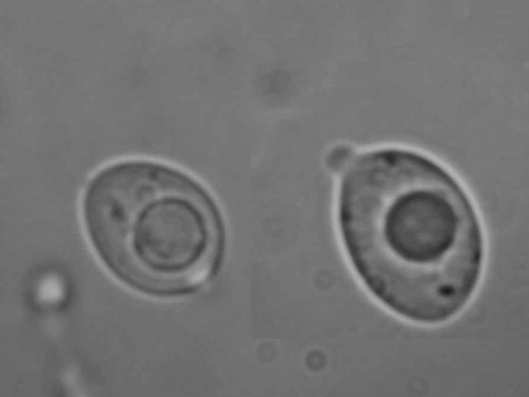 • So, jetzt bin ich zum Nacharbeiten gekommen. Ich habe Trama und Sporen mit Melzers benetzt und nach ein paar Minuten mehrfach Wasser zugegeben und mit Klopapier abgezogen. Wenn ich jetzt beides im Mikroskop betrachte, ist es gelb bis dunkelgelb. Wäre es rot oder braun, würde ich es als dextrinoid bezeichnen, wäre es grau oder blau oder violett, würde ich es als amyloid bezeichnen. Beides ist nicht der Fall.