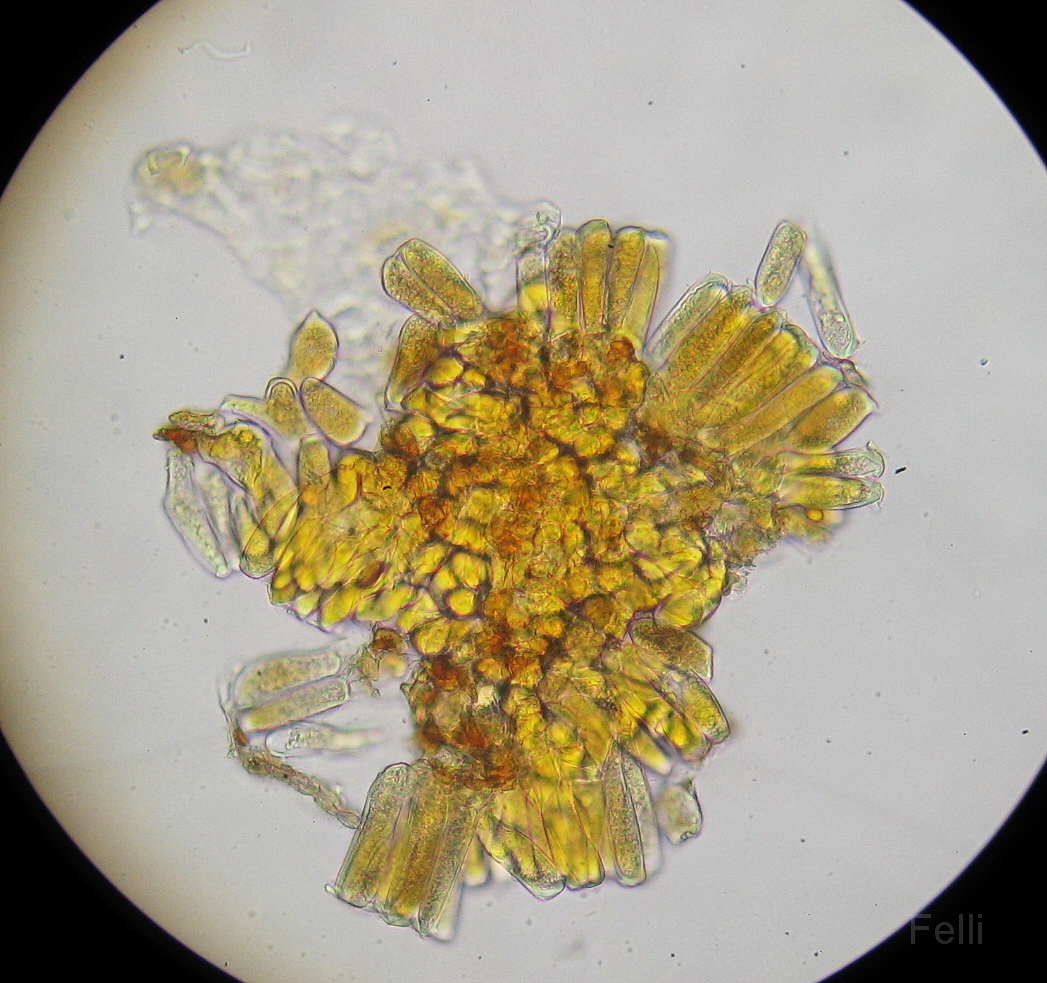 bei dem Rost auf Alnus findet man jetzt im Winter immer nur die Telien, die aus palisadenartig angeordneten Teliosporen bestehen, wie du schön zeigst. Die Teliosporen sind anders als die Uredosporen glatt. Für die sichere Bestimmung (d.h. um M. hiratsukanum und M. betulinum unterscheiden zu können) braucht es die Uredosporen, wobei ich hier in NRW aber noch nie etwas anderes als M. hiratsukanum auf Alnus hatte.