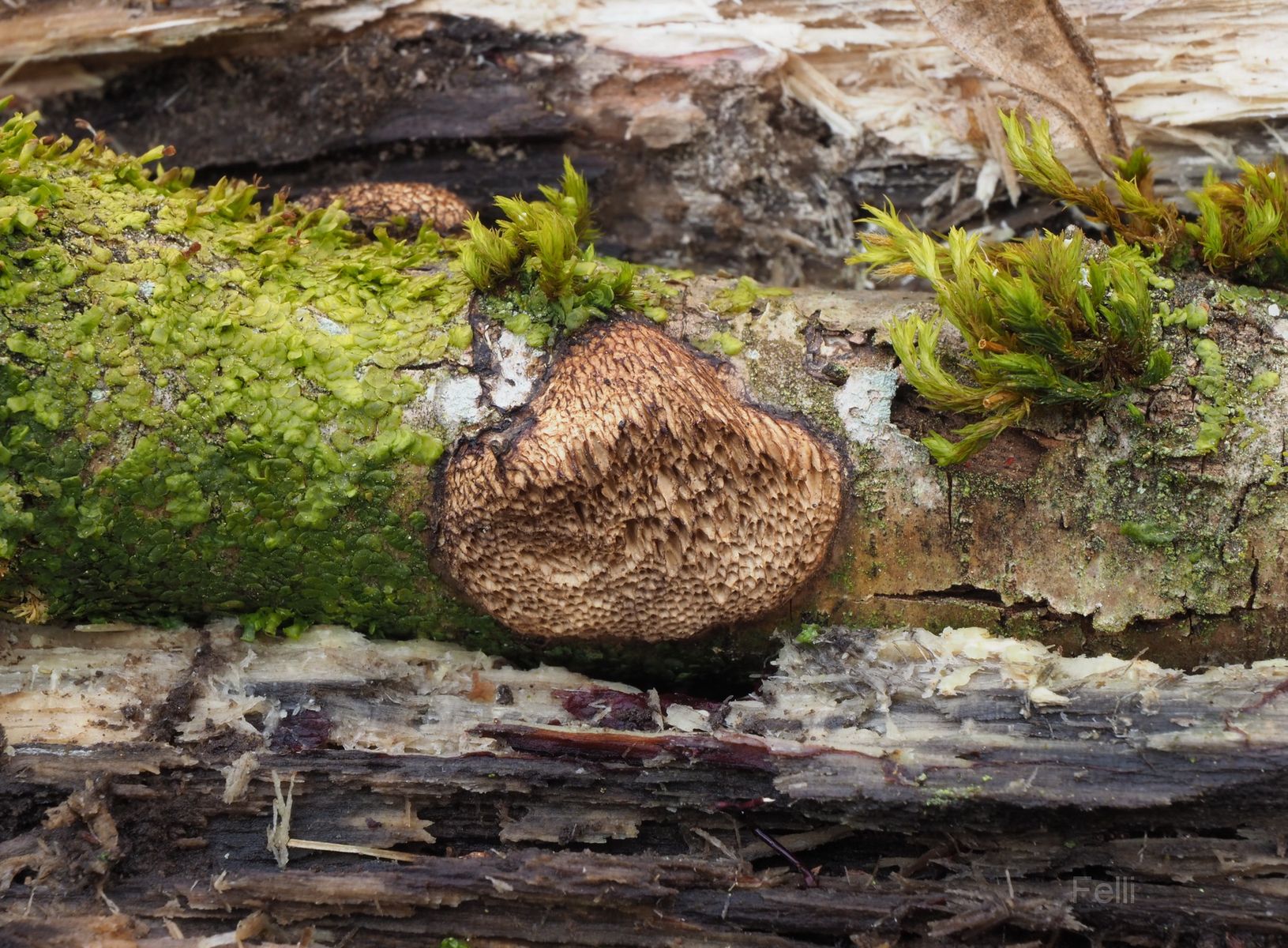 am dünnen Ende des abgestorbenen Astes war dann noch ein resupinater Porling mit schwarzem Rand