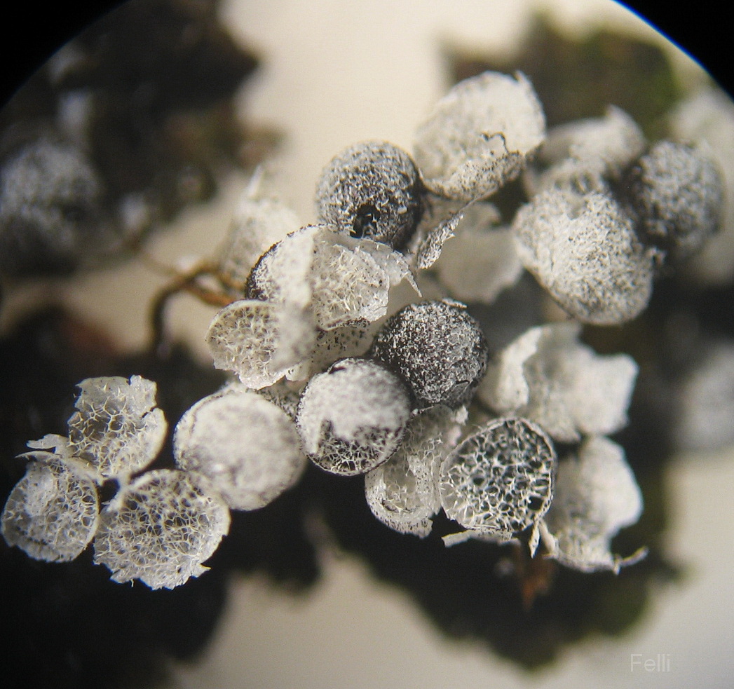 Das ist die einzige Art bei den Badhamien die so lange Stielchen hat und dadurch die Fruchtkörper oft daran herunterhängen läßt.