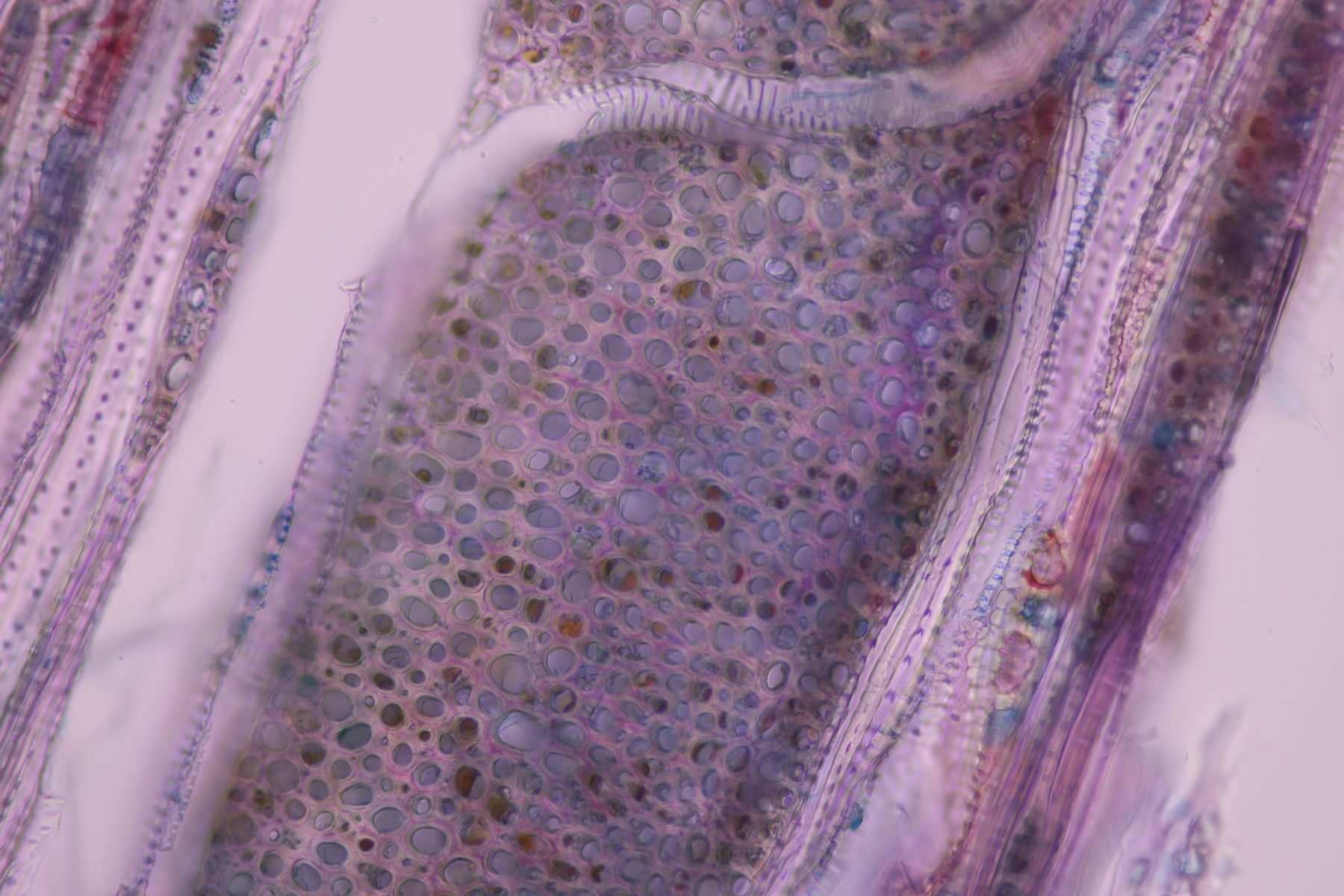 das waren tatsächlich heute meine ersten Versuche bzgl. der mikroskopischen Holzbestimmung. Ich habe dafür eine Rasierklinge verwendet. Ein Mikrotom habe ich nicht. Ich habe das Holz vorher kurz weichgekocht und dadurch ließ es sich besser schneiden.