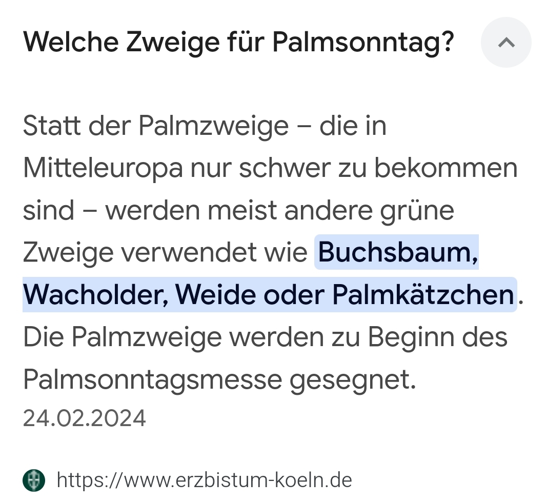 Ist das vllt irgendwas religiöses von wegen Palmsonntag oder so? Bin nicht katholisch, aber das wäre so eine Idee...