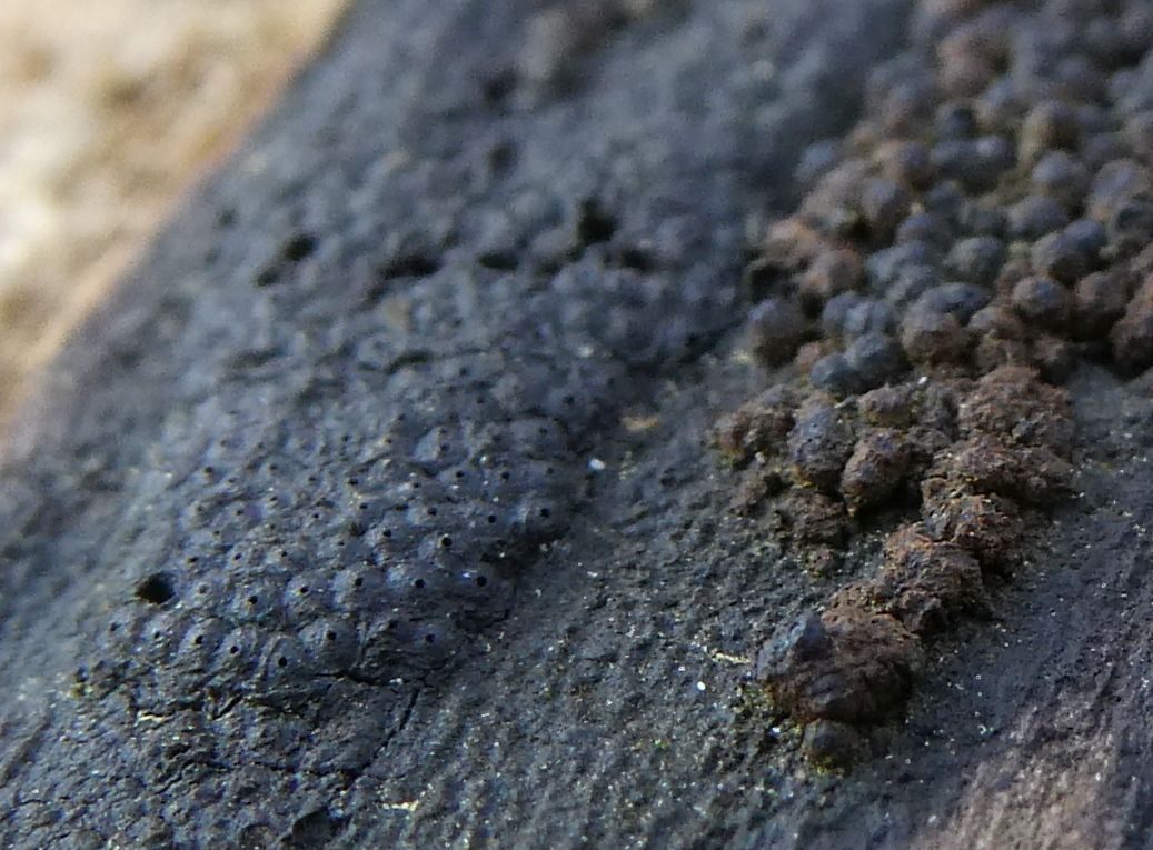 im feuchten Wald am liegenden Laubholzstamm (Eiche?Esche) erstreckten sich großflächige schwarze Flächen (bis 50cm)