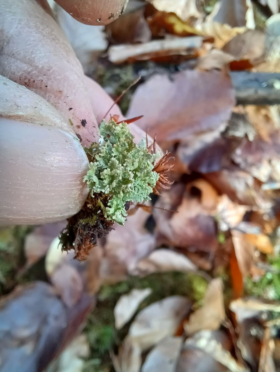 Nach der Durchsicht meiner drei Bestimmungsbücher bin ich bei der Büschelflechte oder Rasen-Säulenflechte, Cladonia caespiticia, gelandet. "Kann das sein?", fragt ganz vorsichtig der Botschafter ![]()