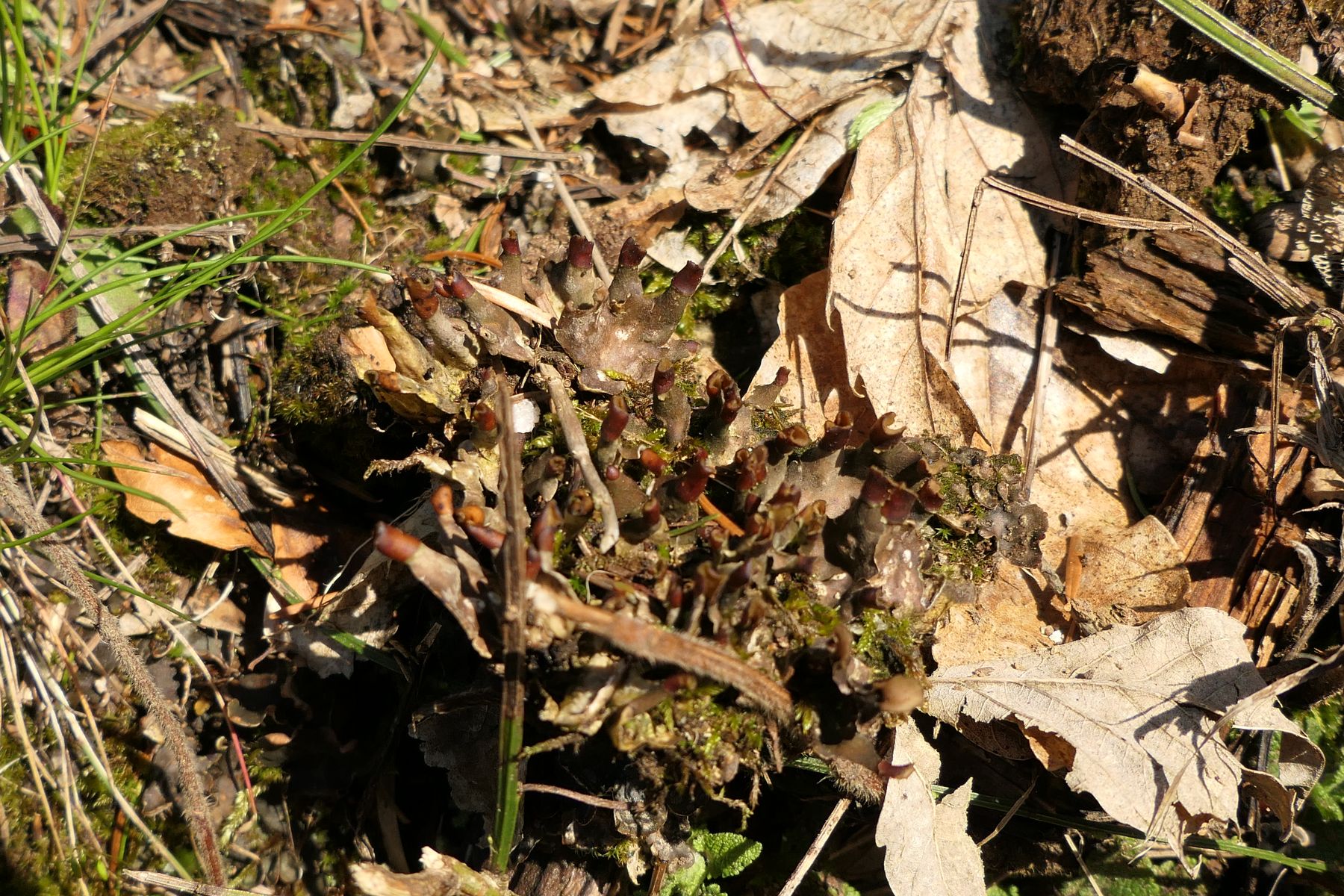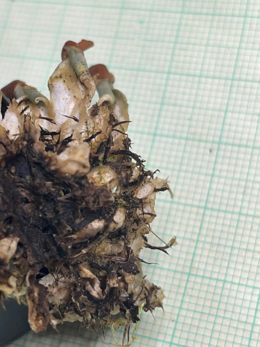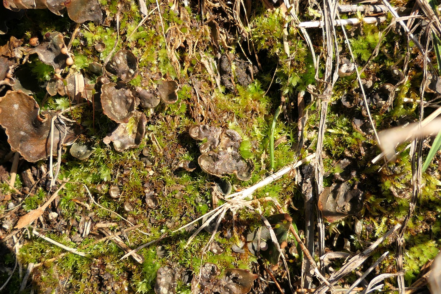 Die Apothecien auf dem ersten Foto sind recht dunkel, die sattelförmigen Exemplare sieht man nur von unten.