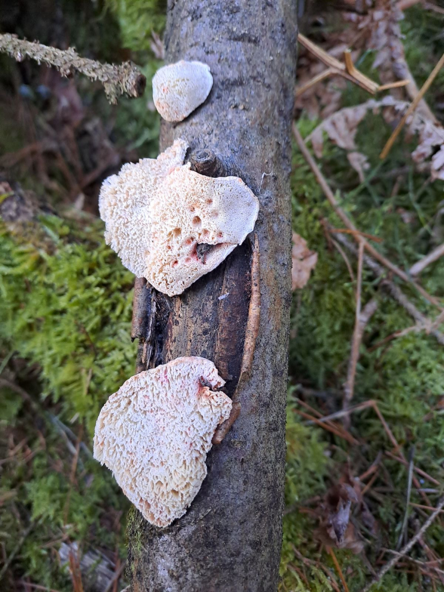 es kommen mehrere Saftporlinge in Frage. Makroskopisch kommen wir hier zu keinem Ergebnis. Dein Fund ist sicher überständig und auch schon infiziert, was an der roten Farbe zu erkennen ist.