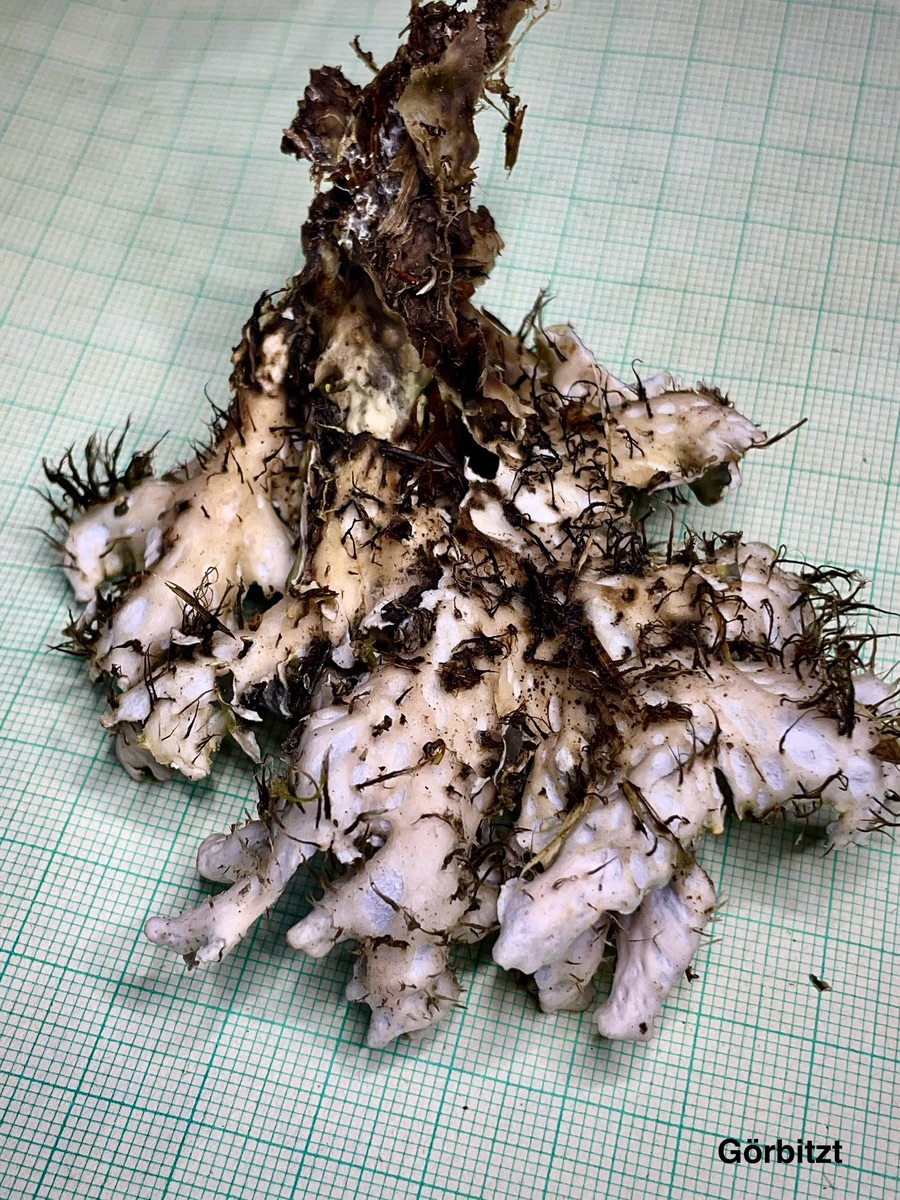 Rhizinen einfach,glatt,bis 10 mm lang zum Zentrum +/- auffasernd,bräunlich bis dunkelbraun