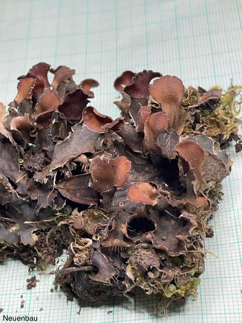 • Hallo Erna, die Gnubbel in den letzten Bildern gehören eher nicht zu der Flechte, sondern sind irgendwelche Pilze, die parasitisch auf der Peltigera hausen (gerade Peltigeras haben Unmengen, im Sinne der möglichen Artenvielfalt, an pilzlichen Unterbewohnern),