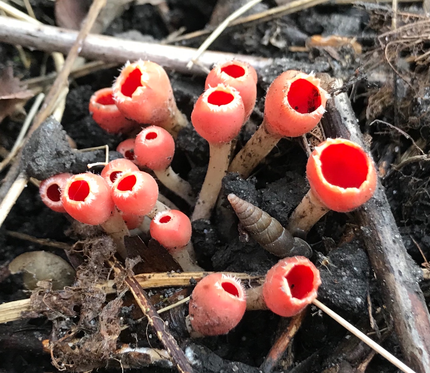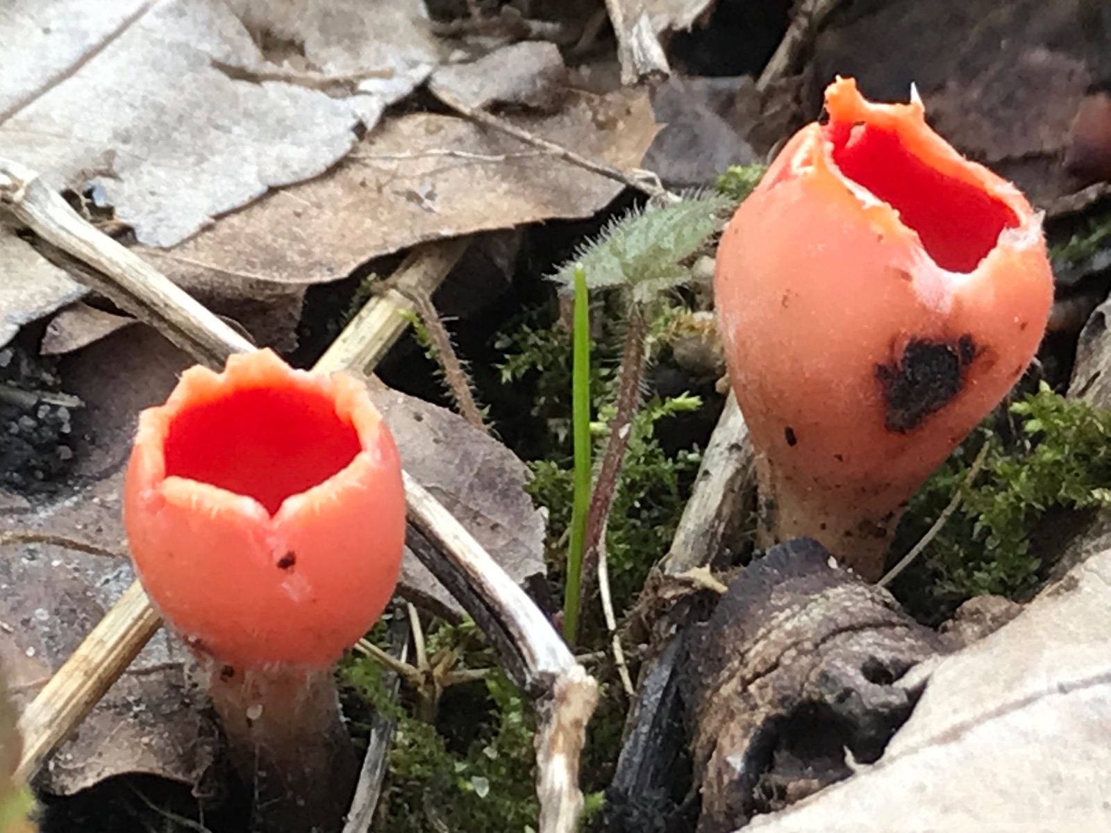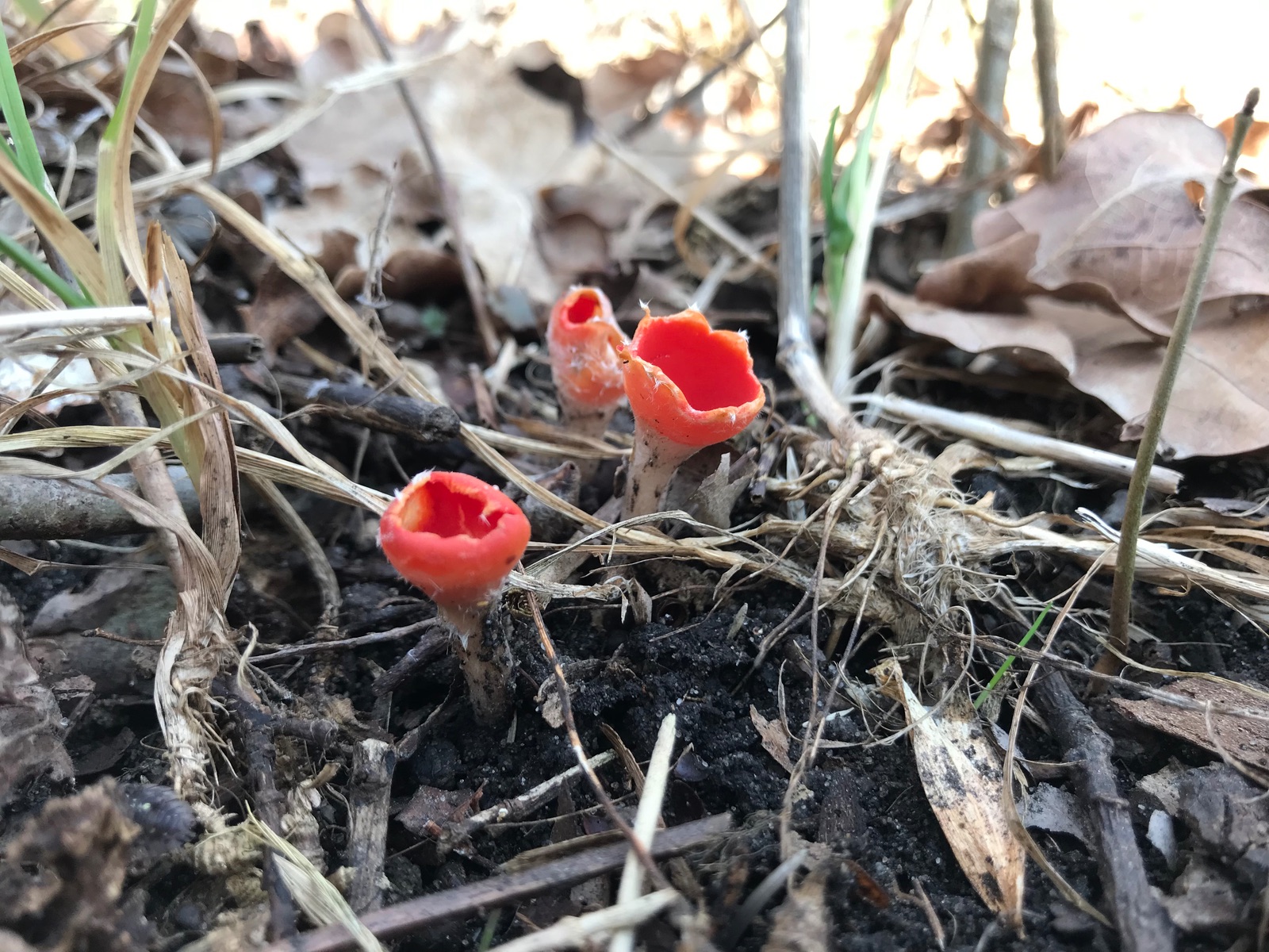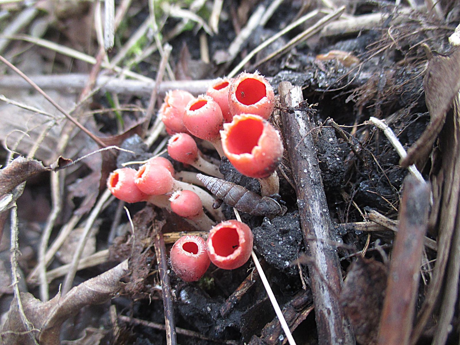 nachdem Corne und ich letzte Woche bei unserer Suche nach Tulpenbecherlingen und Kelchbecherlingen nur 50-prozentigen Erfolg hatten ging es heute früh in ein anderes Gebiet. Dieses Mal galt unsere Begierde den sogenannten Urnen (Urnula craterium) und wieder den Tulpenbecherlingen (Microstoma protractum). Wir hatten wieder nur zu 50% Erfolg. Nach anfänglich vergeblichen Suchen haben wir zumindest die Tulpen entdecken können.
