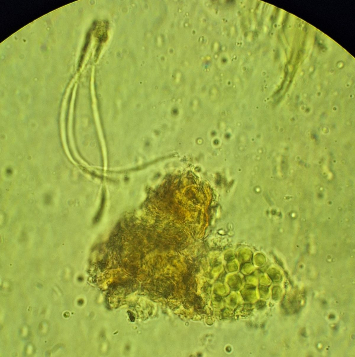 Paraphysen und irgendwelche größeren Objekte, Sporen im früheren Stadium?