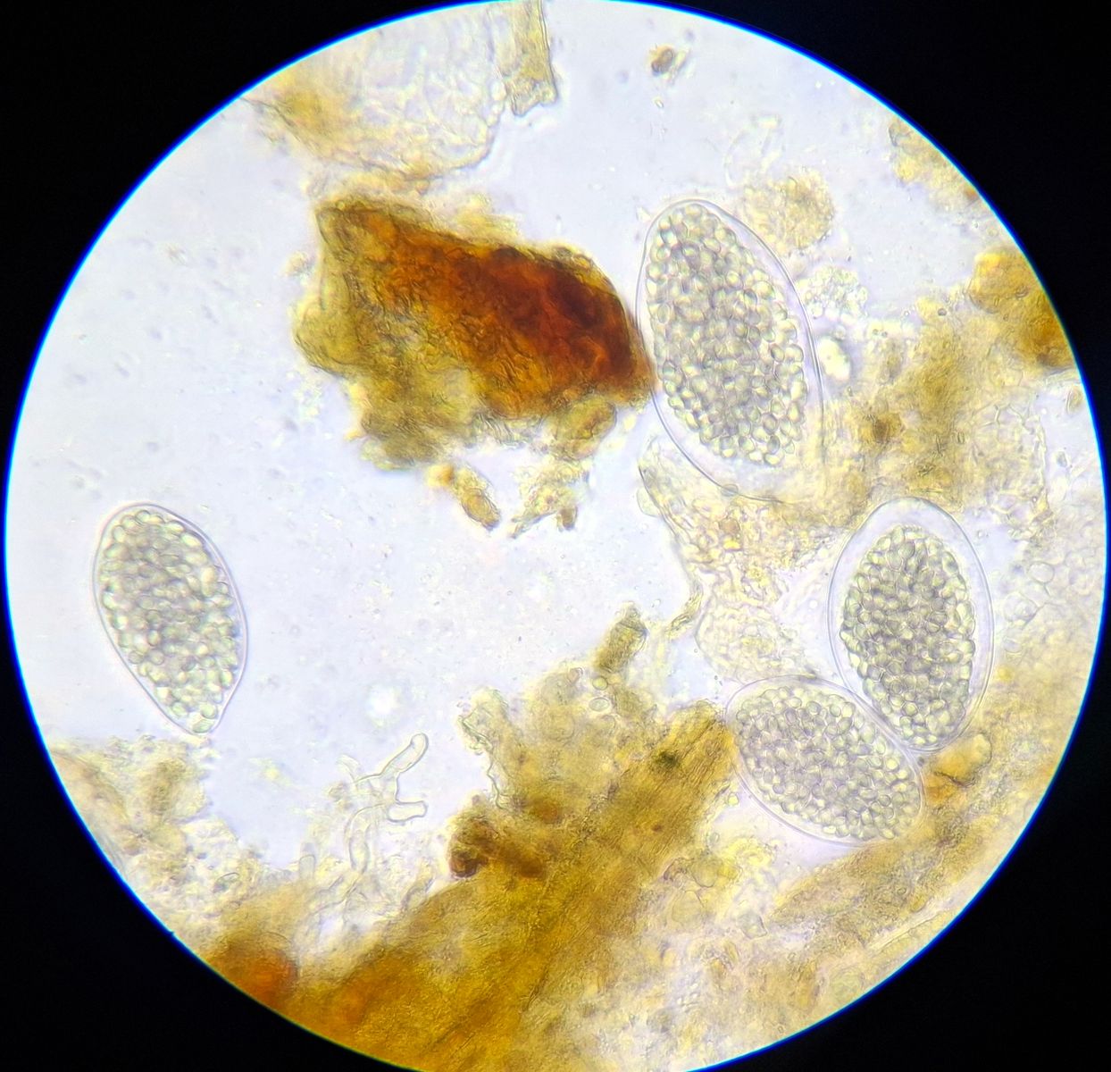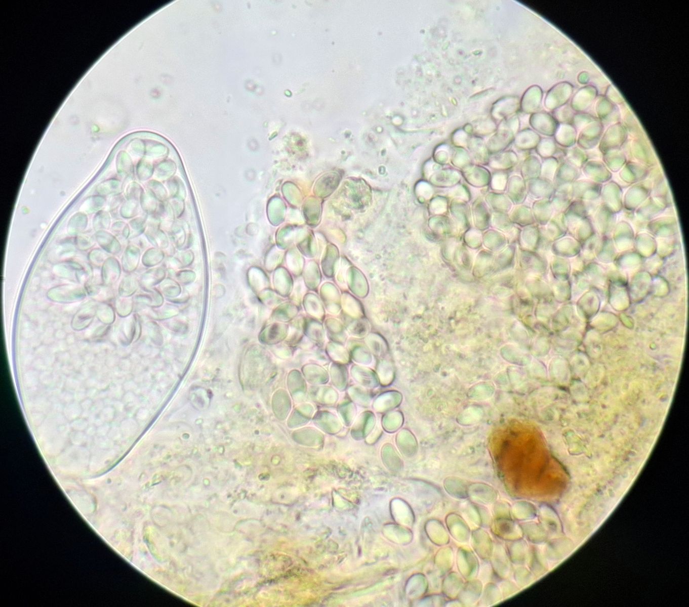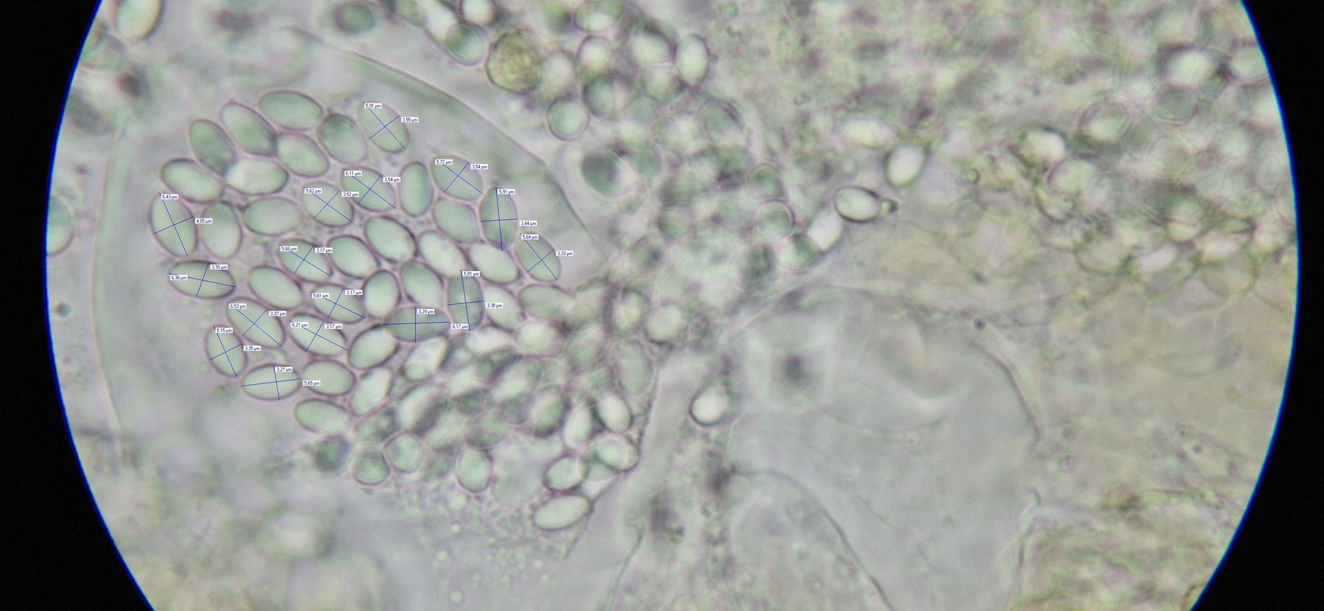 Ich hab jetzt zum ersten Mal von Telebolus gehört, seit ich nach Asci mit vielen Sporen gesucht habe. Zufällig ist so ein Sporenbeutel mit weit über 100 Sporen unterm Mikro dabei gewesen, so dass ich nochmal ein bisschen genauer geschaut und gestochert und gelesen habe. Würdet ihr mit Telebolus polysporus mitgehen, oder spricht irgendwas dagegen?