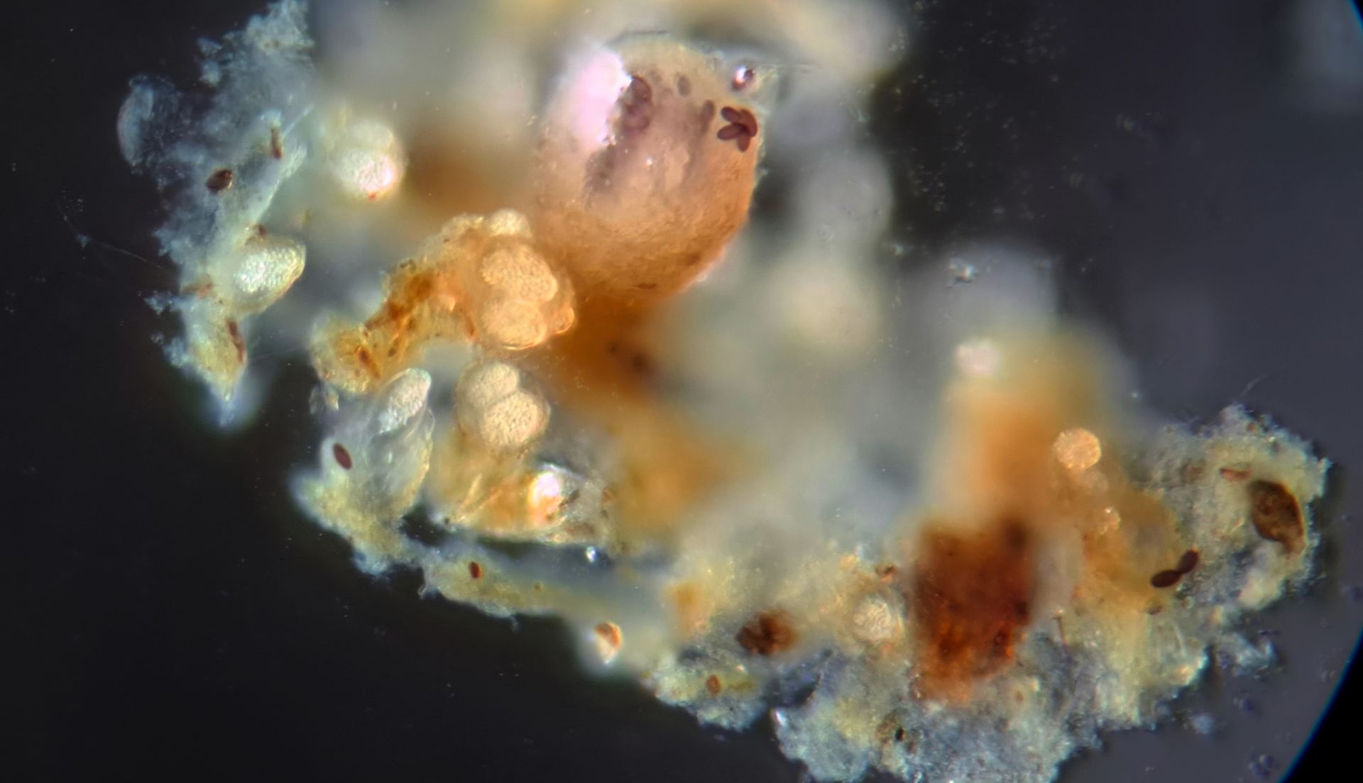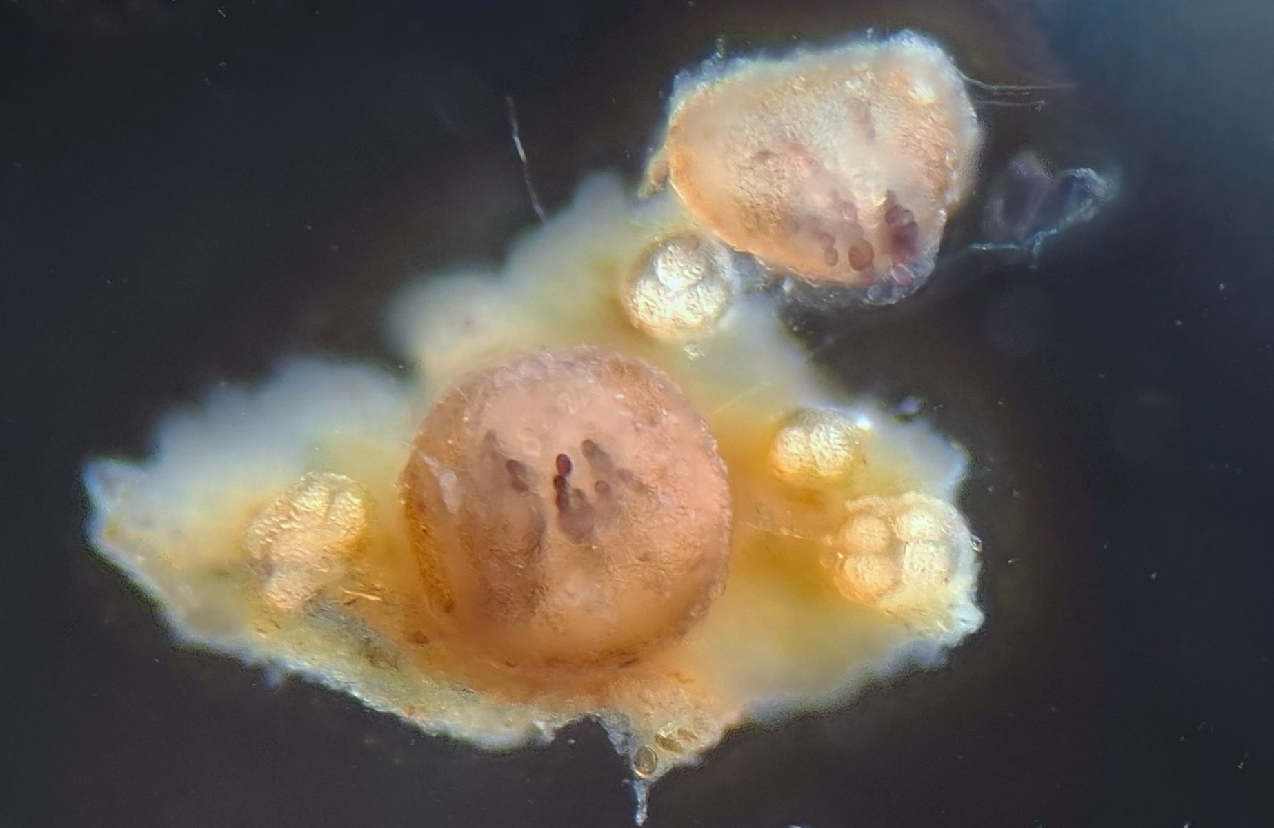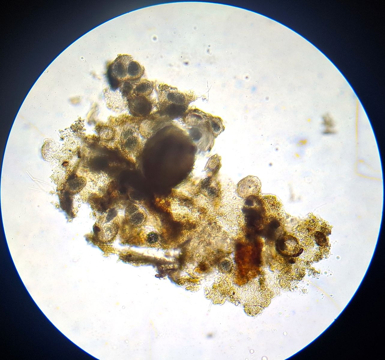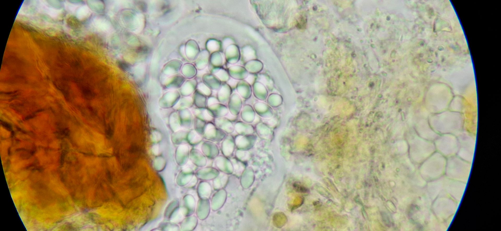 Ich hab jetzt zum ersten Mal von Telebolus gehört, seit ich nach Asci mit vielen Sporen gesucht habe. Zufällig ist so ein Sporenbeutel mit weit über 100 Sporen unterm Mikro dabei gewesen, so dass ich nochmal ein bisschen genauer geschaut und gestochert und gelesen habe. Würdet ihr mit Telebolus polysporus mitgehen, oder spricht irgendwas dagegen?