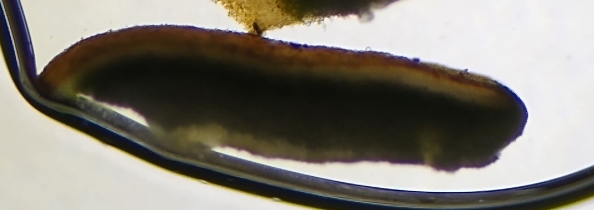 Die Becherunterseite ist weiß genoppt, bewarzt, gestachelt oder mit Rhizinen