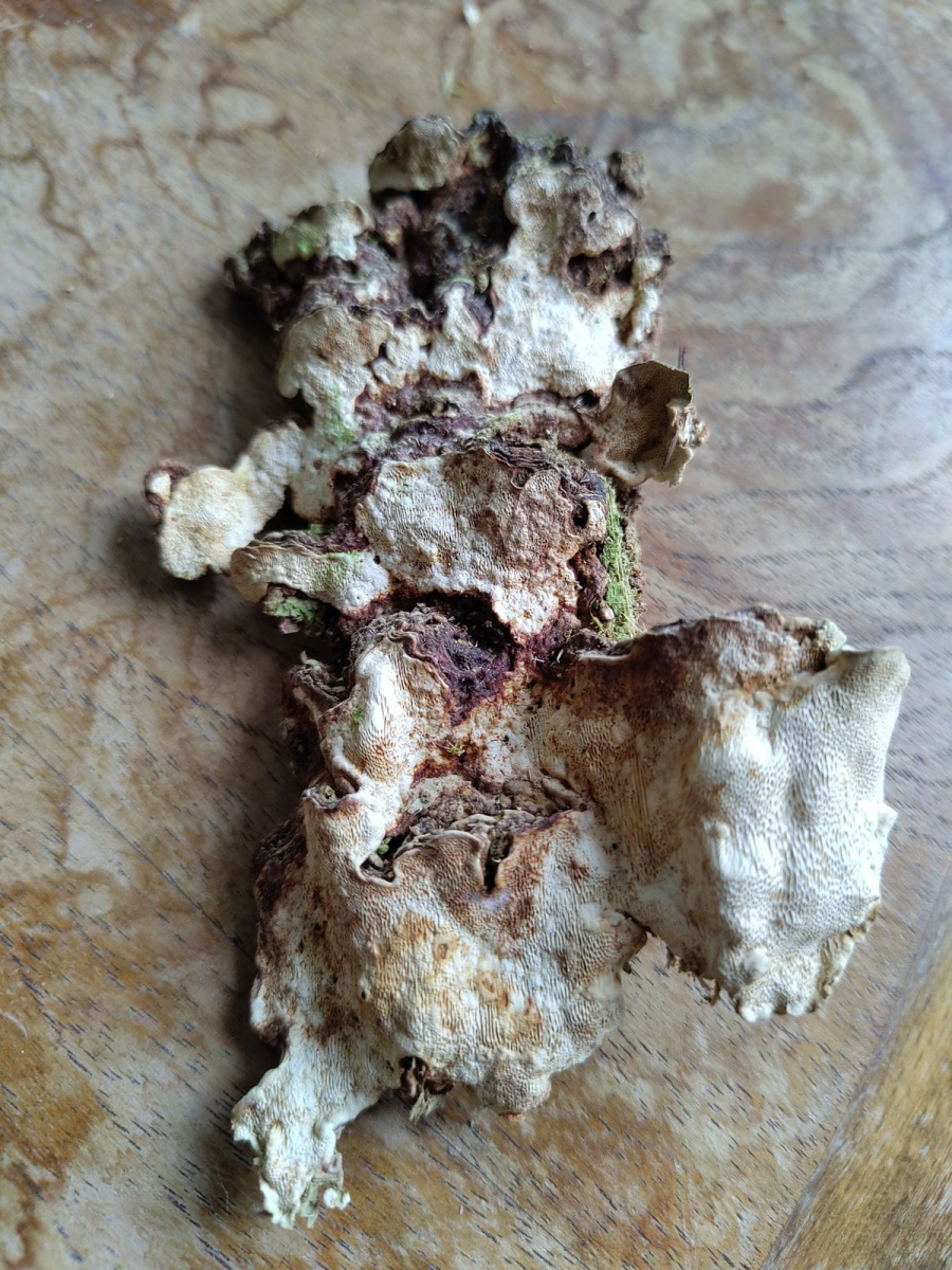 Die in Büchern und auf Homepages abgebildeten Wurzelschwämme sind immer Braun mit weissem Rand und wirken auf mich etwas massiger als meine Fruchtkörper. Die Erscheinungsform, die ich da fotografiert habe, scheint mir überhaupt nicht einmalig oder selten zu sein. Auf mich wirkt das etwas suspekt. Kannst du (oder jemand anderes) das erklären?