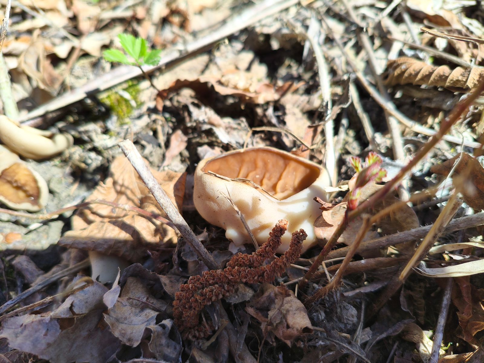 Bisher habe ich nur ein paar kleine Käppchenmorcheln gefunden.